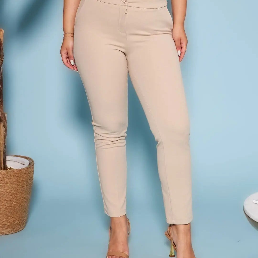 Pantalón pitillo en cady elástico de color liso. BEIGE