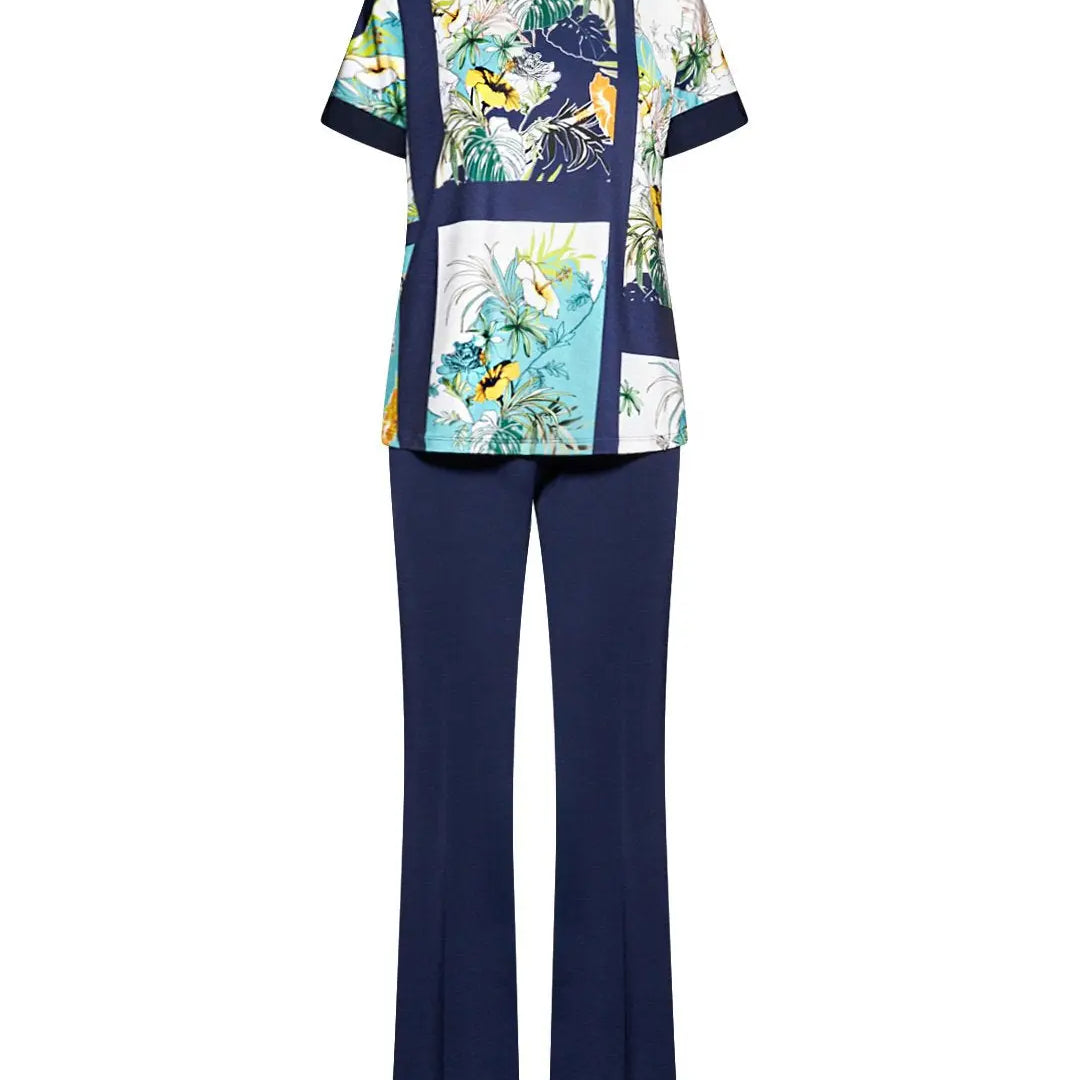Conjunto completo de jersey estampado y pantalón liso en color azul aguamarina