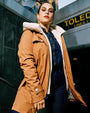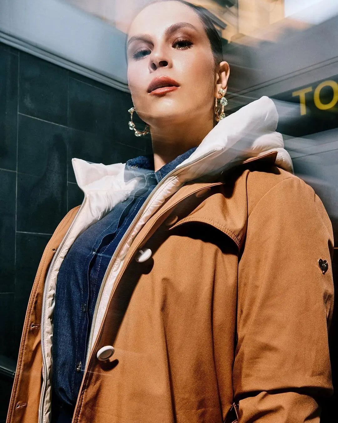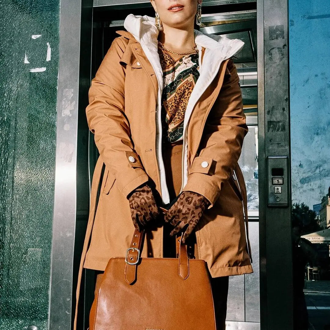 Chaqueta acolchada con capucha en nailon CARAMELLO