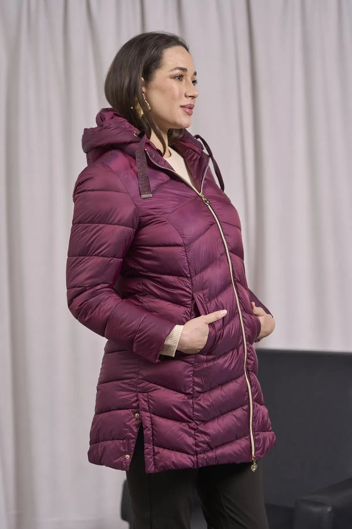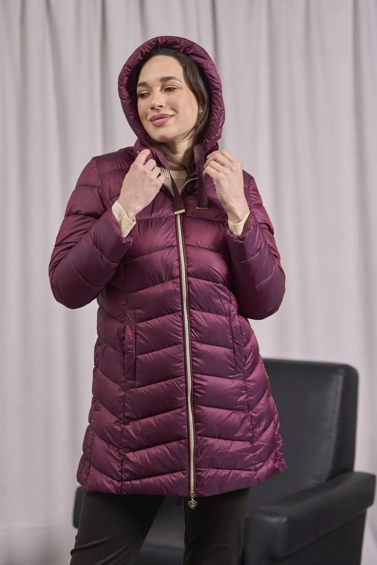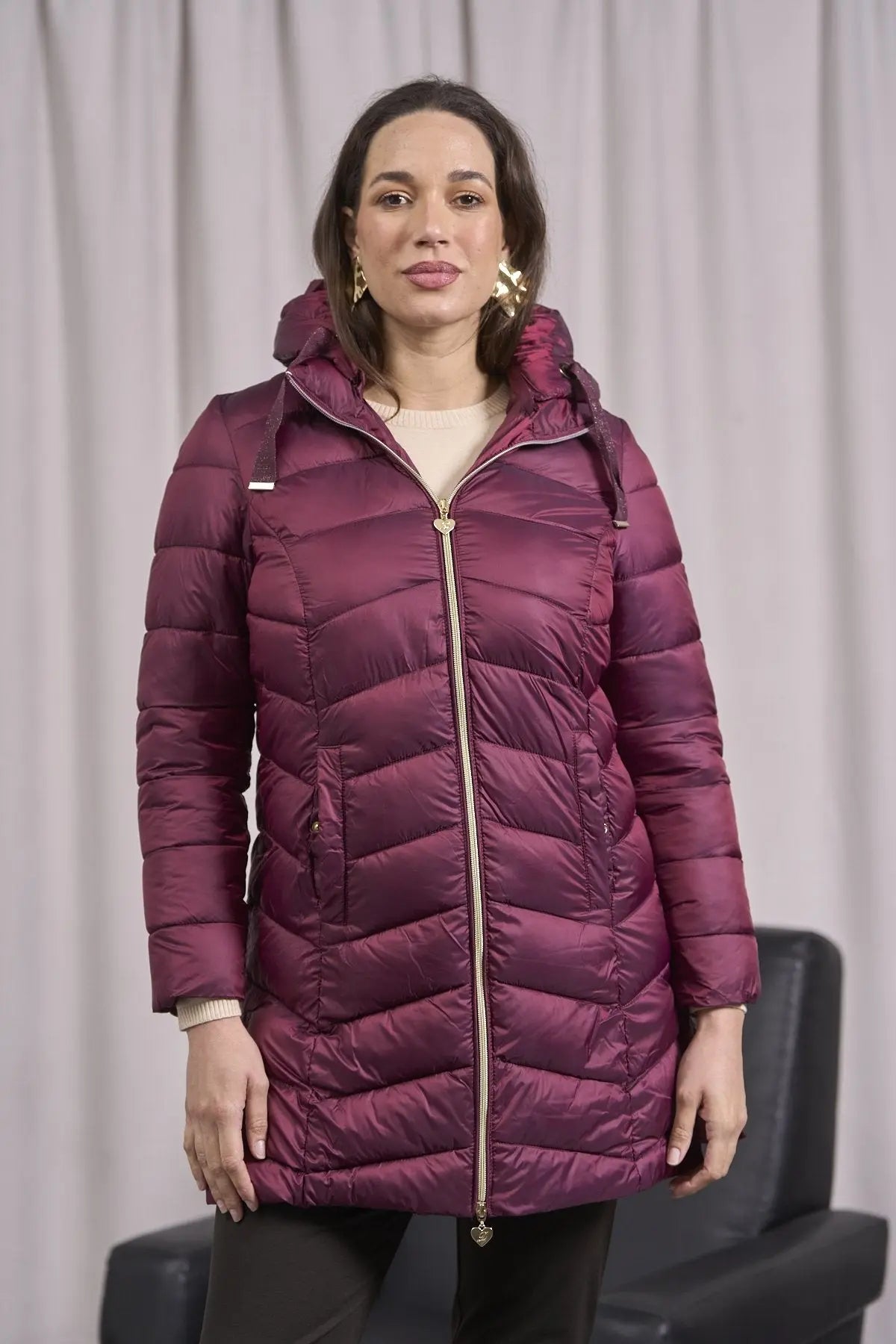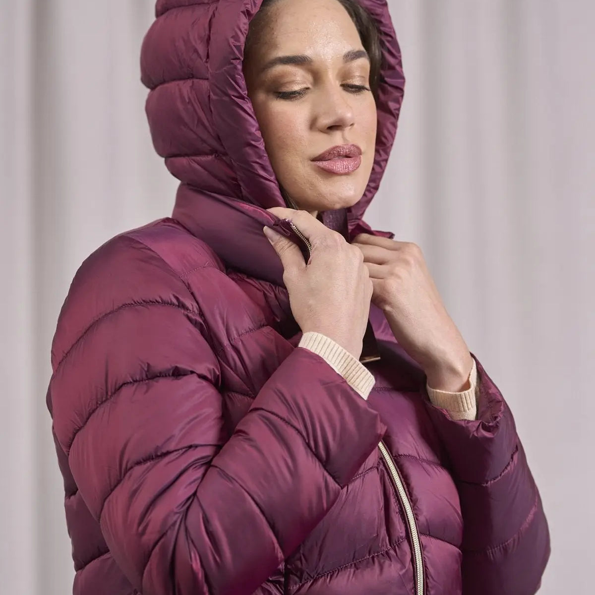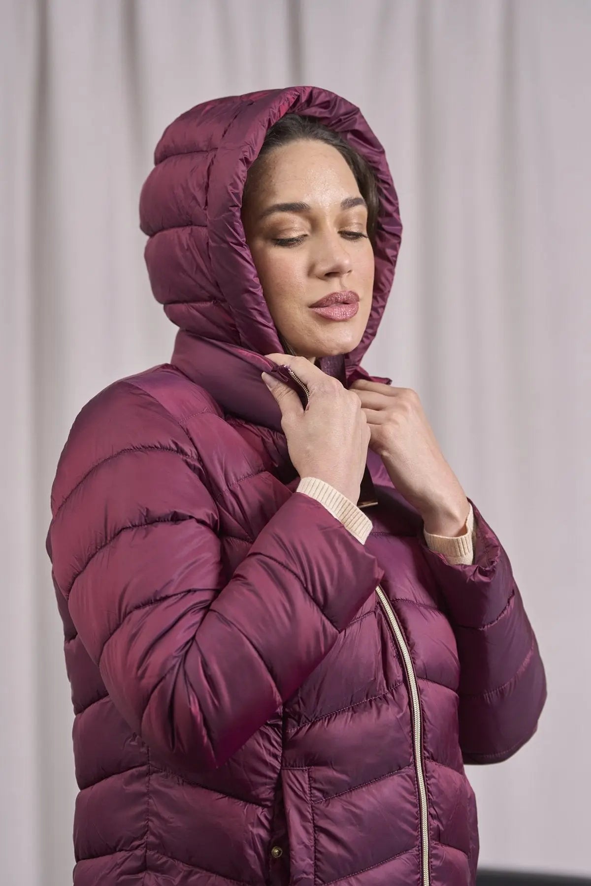 Chaqueta con capucha y cordones en grosgrain BURDEOS