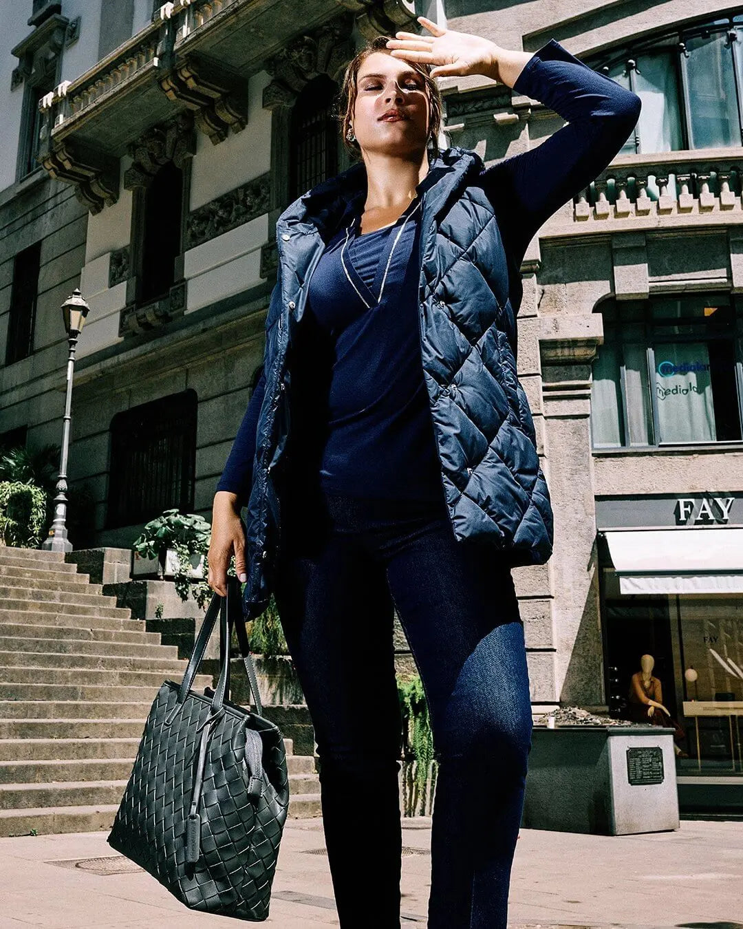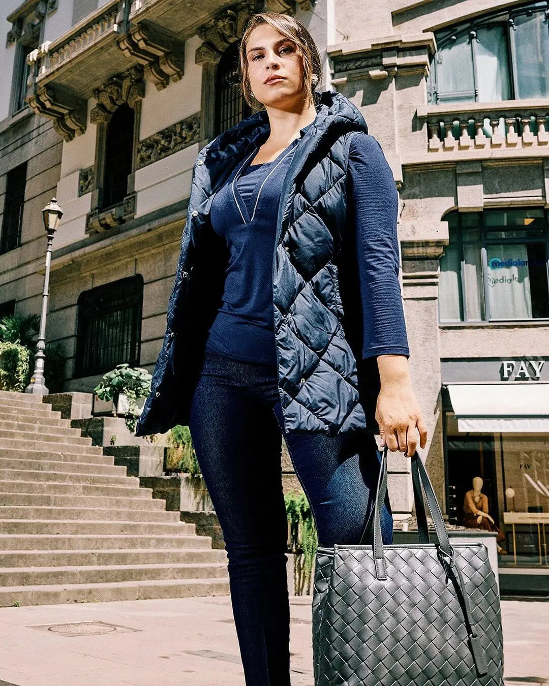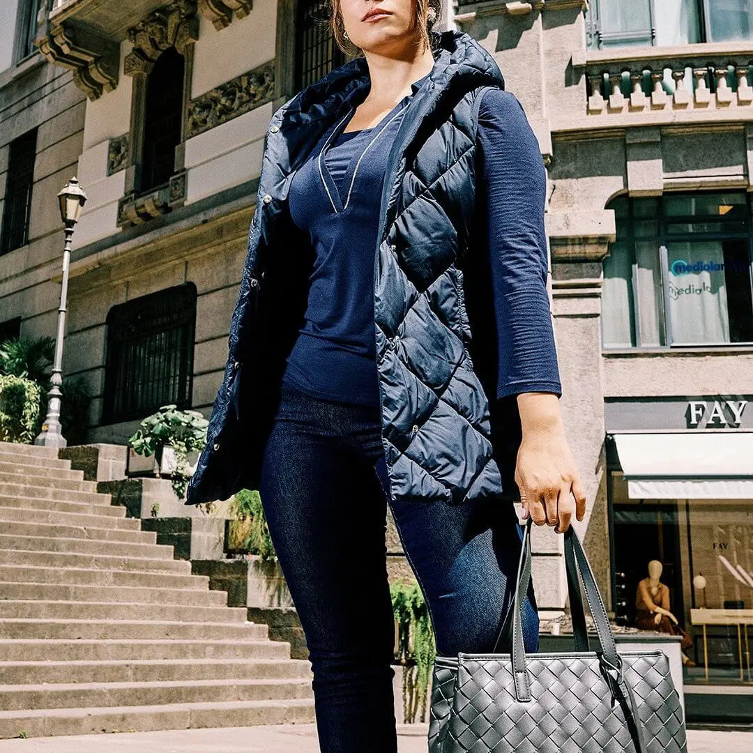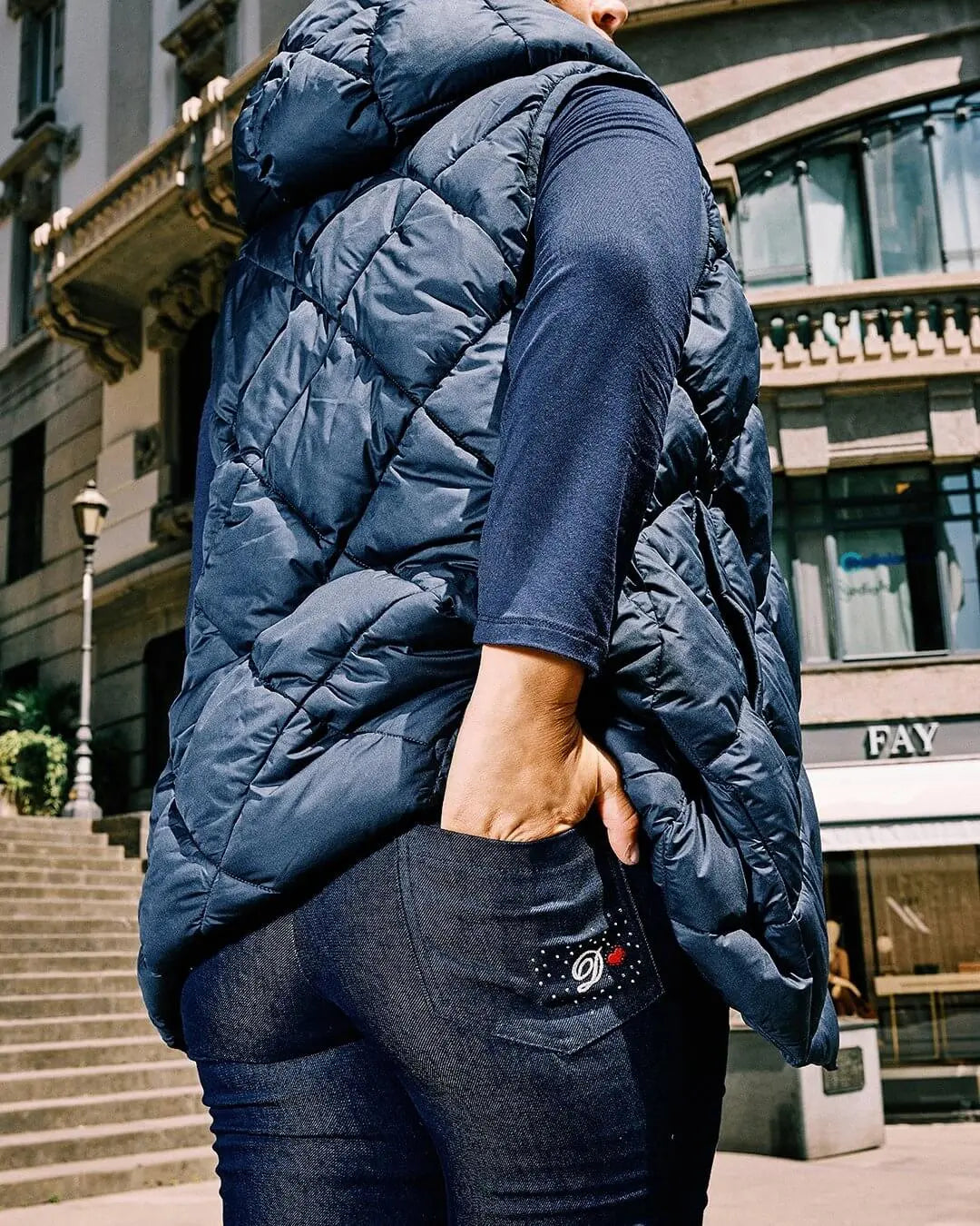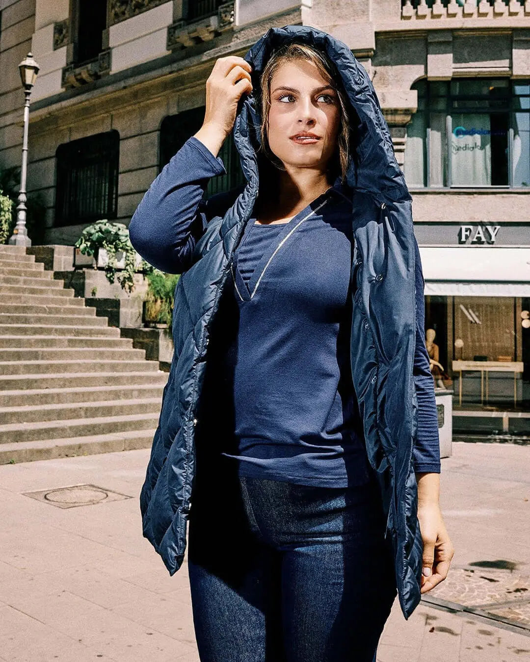 Chaleco de nailon acolchado con capucha en color liso AZUL