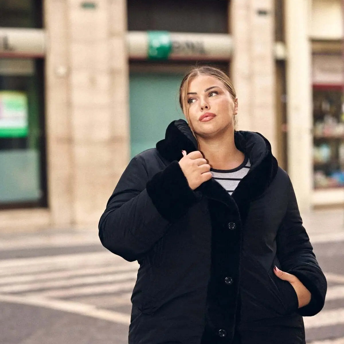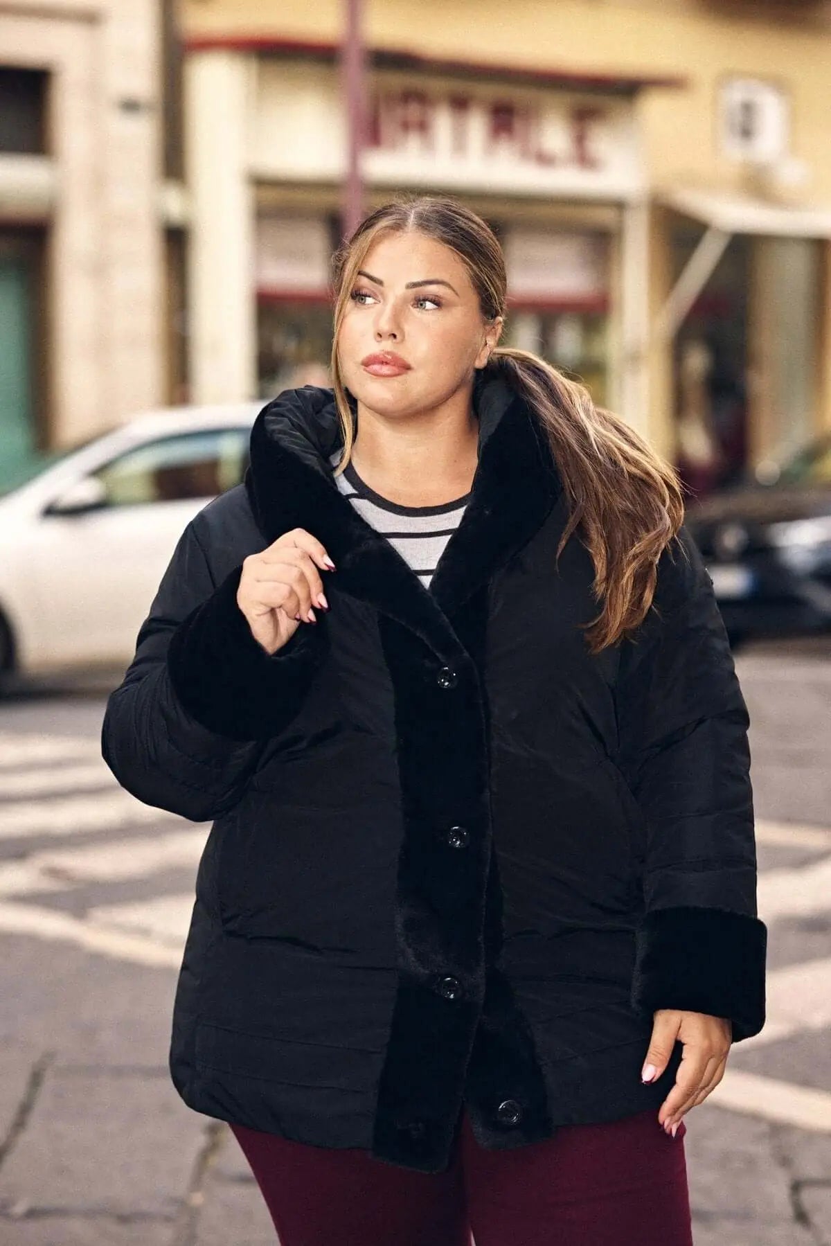 Chaqueta de plumas con inserciones de ecofur en tono NEGRO
