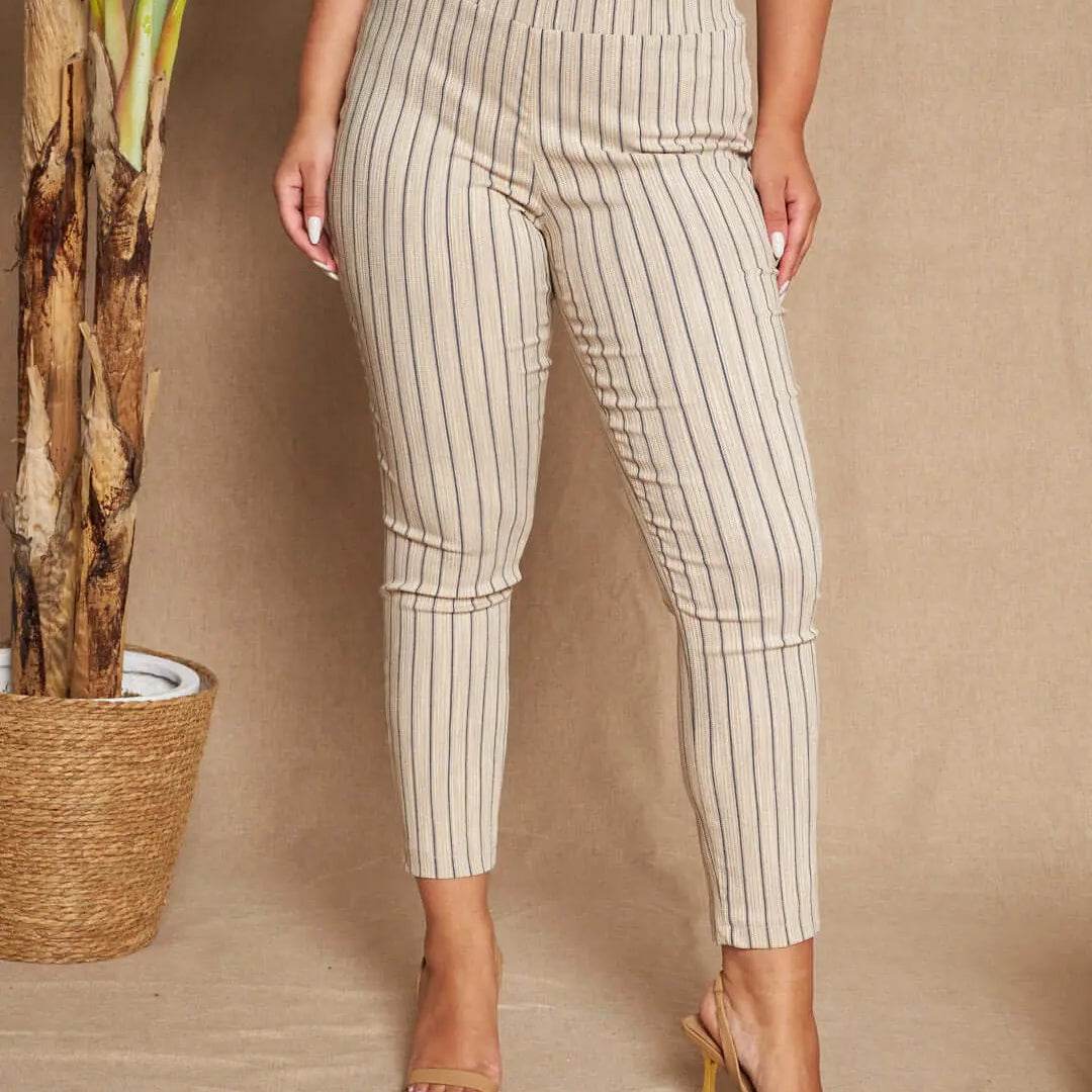 Pantalón pitillo en jacquard de mezcla de algodón con estampado de rayas BEIGE-AZUL