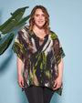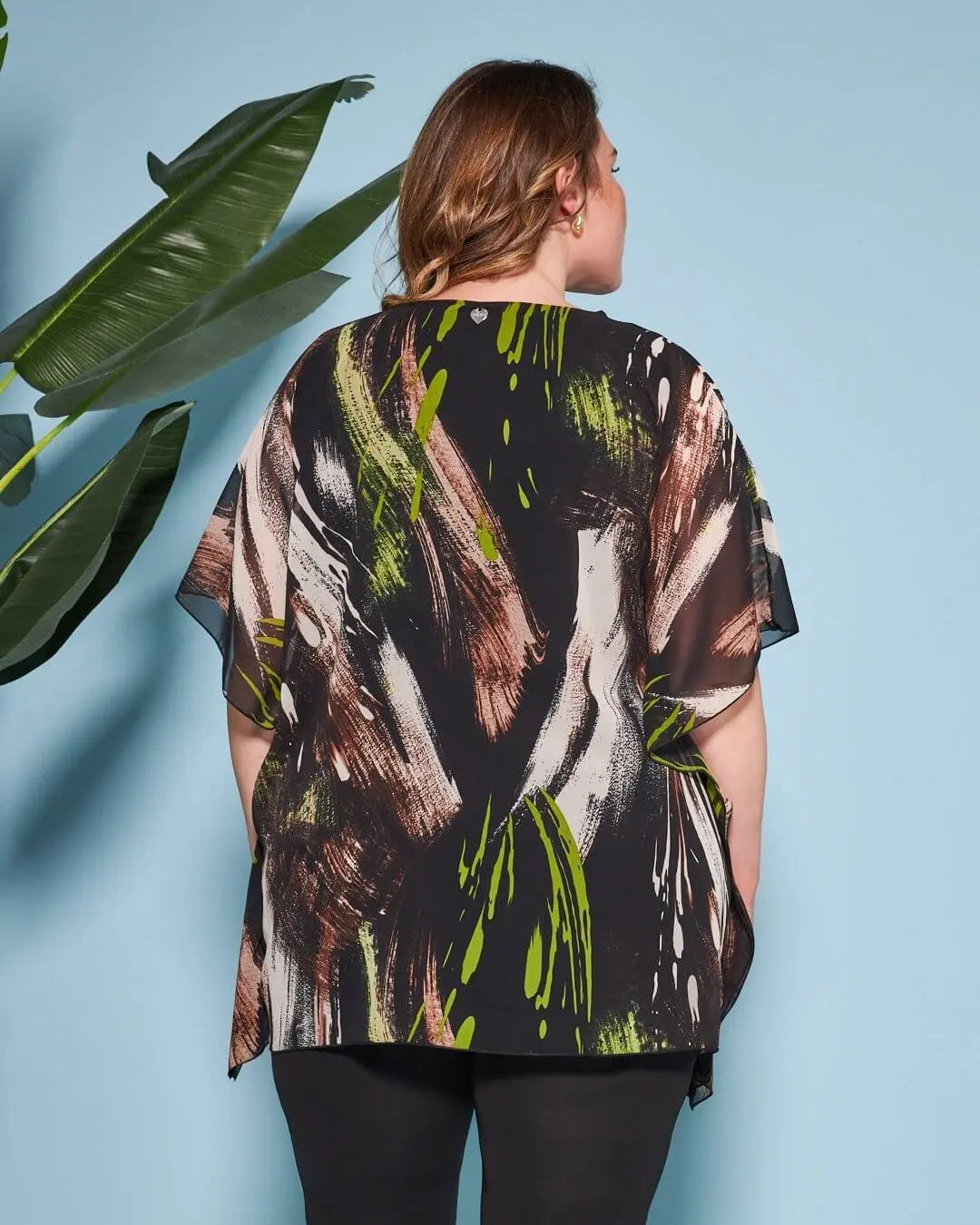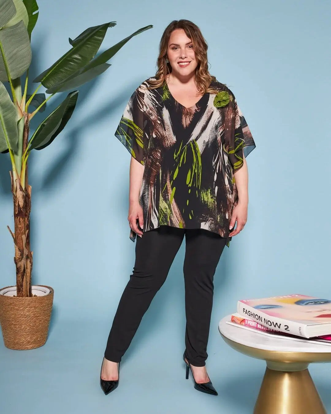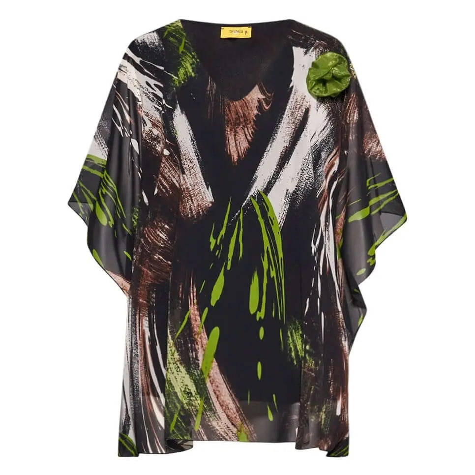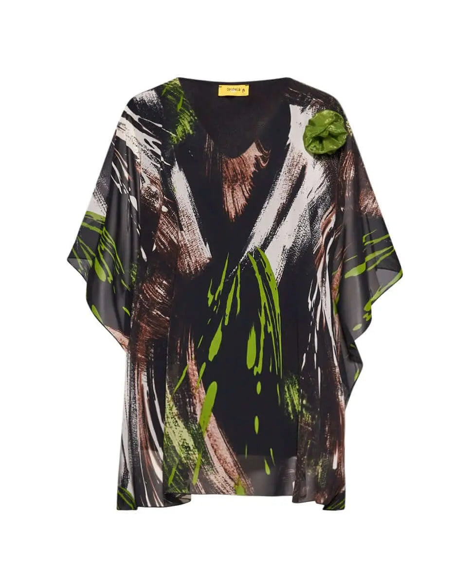 Blusa de escote pico en georgette con broche en forma de rosa en tejido de lurex. CAL