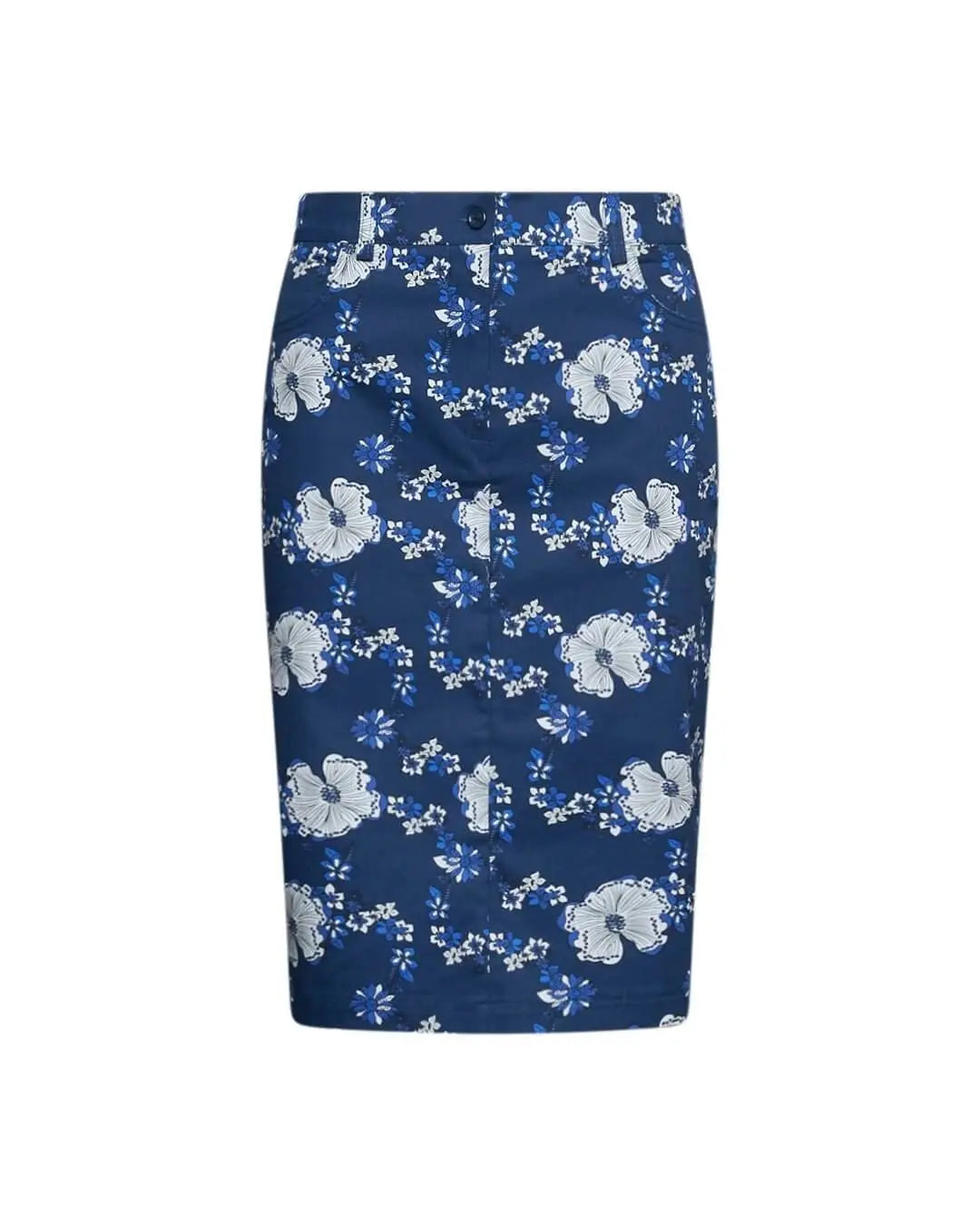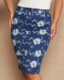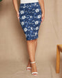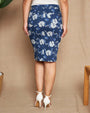 Falda lápiz en popelina de algodón elástico con estampado floral y logo D en la espalda. BLUETTE