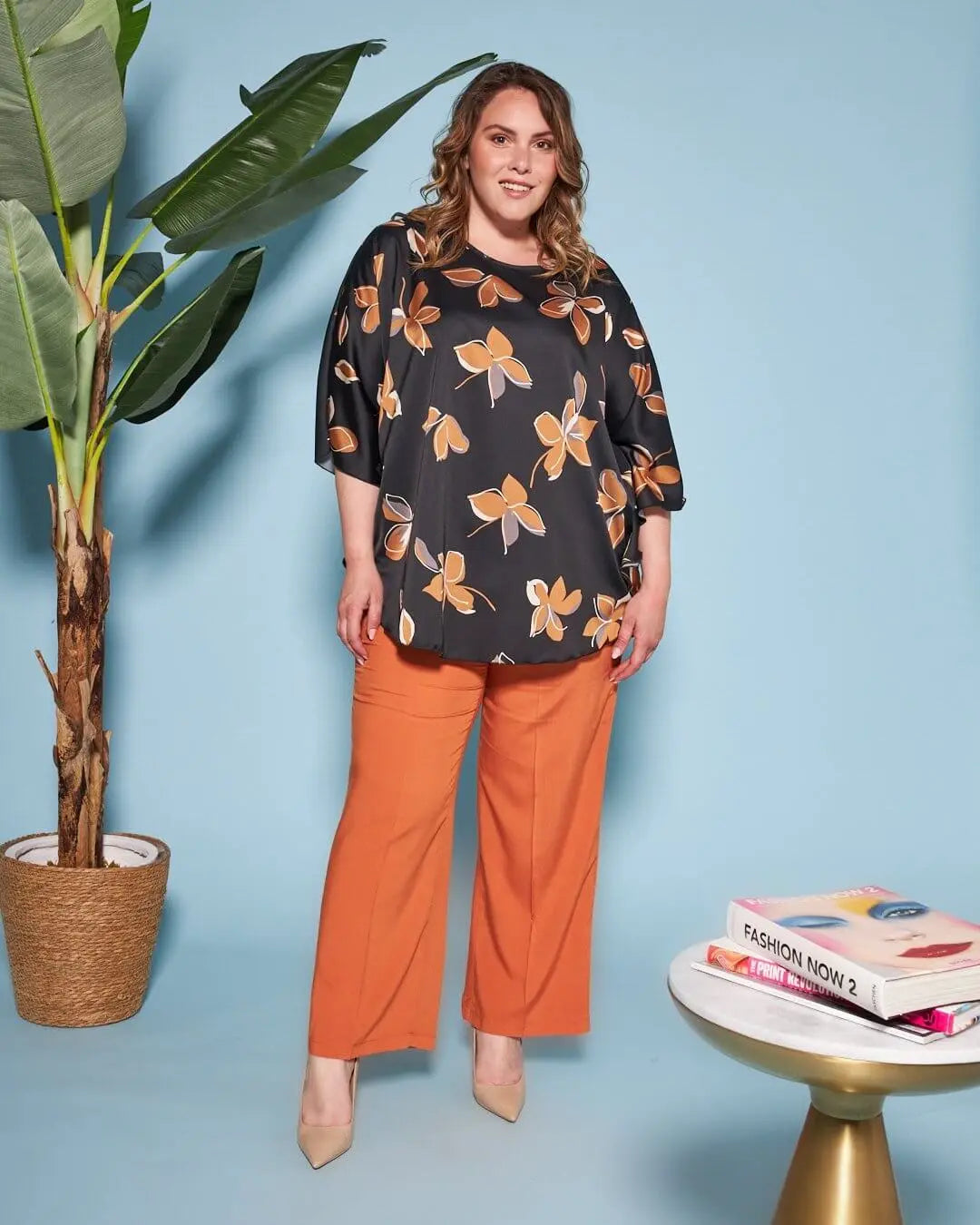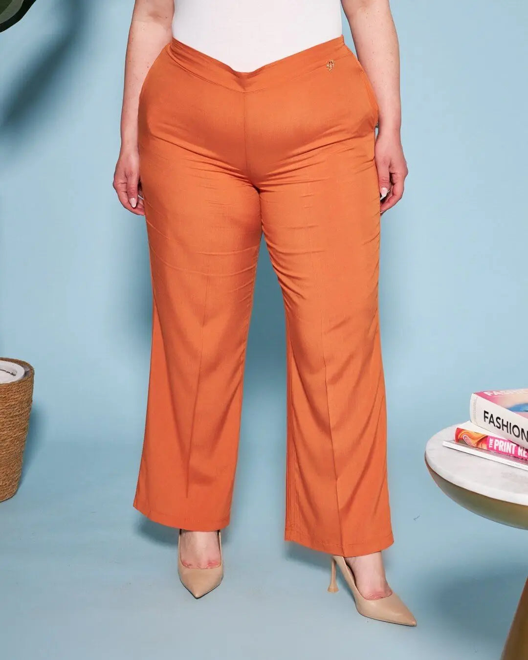 Pantalón palazzo de algodón liso con cordón elástico NARANJA