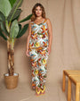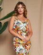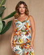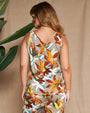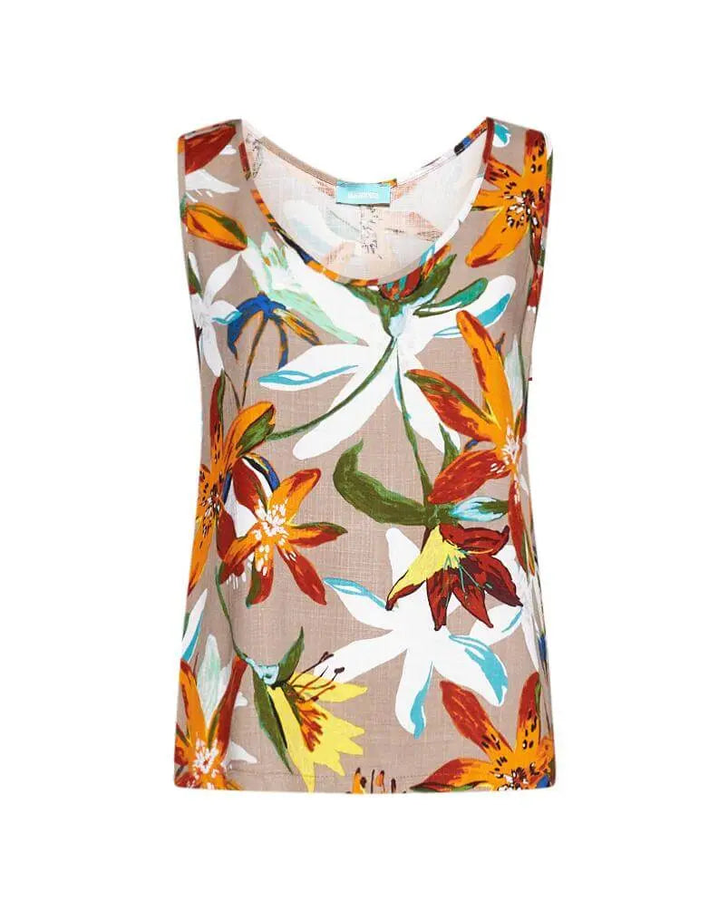 Top sin mangas de lona de viscosa con estampado floral, escote en pico y aberturas laterales. NARANJA