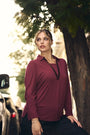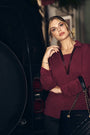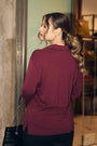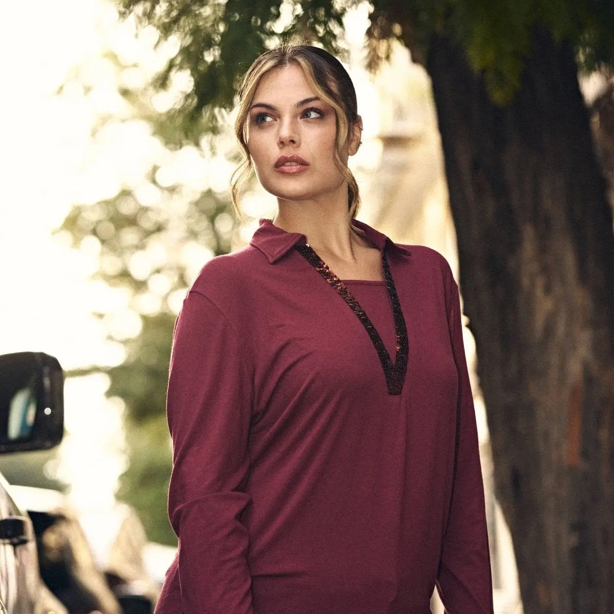 Jersey de manga larga con cuello en V y aplicación de lentejuelas tono sobre tono BURDEOS