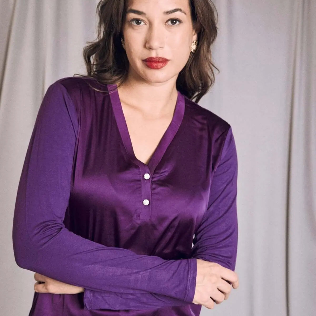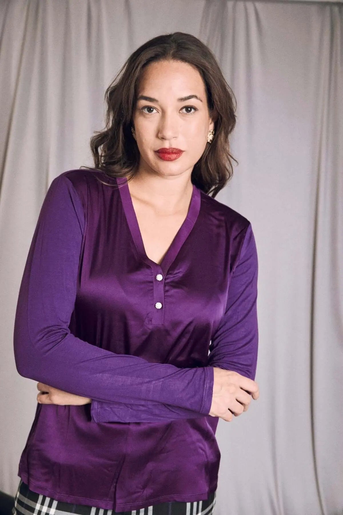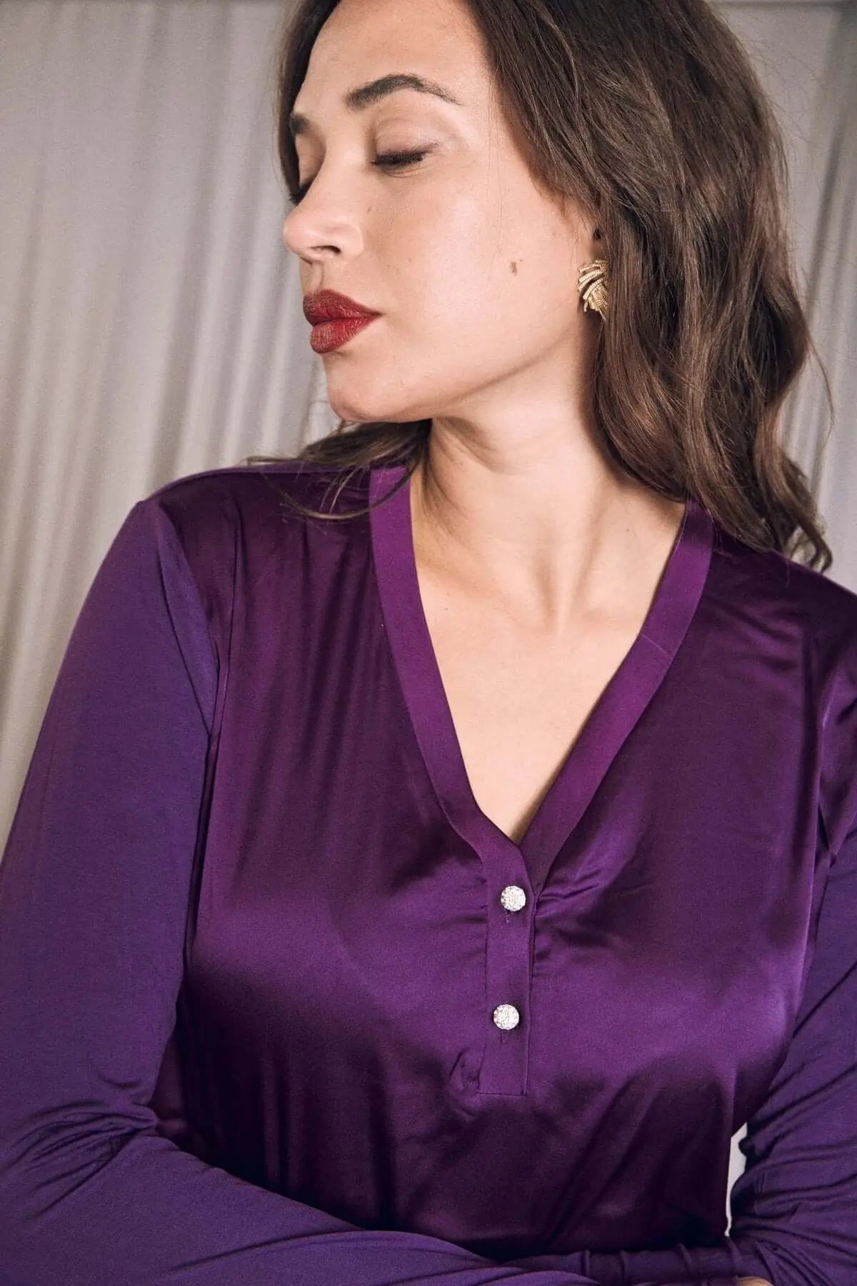 Suéter de dos materiales con cuello en V y botones PLUM