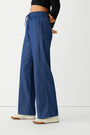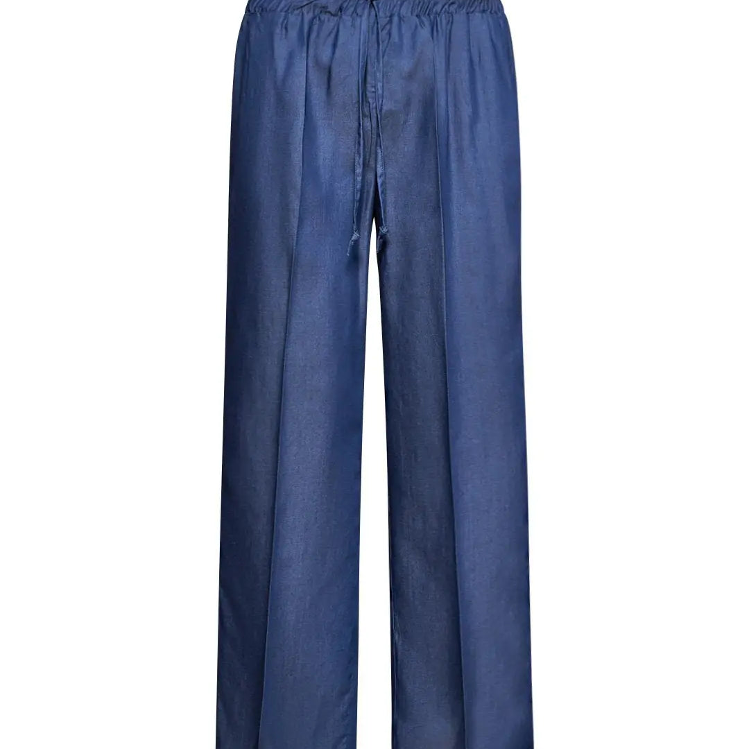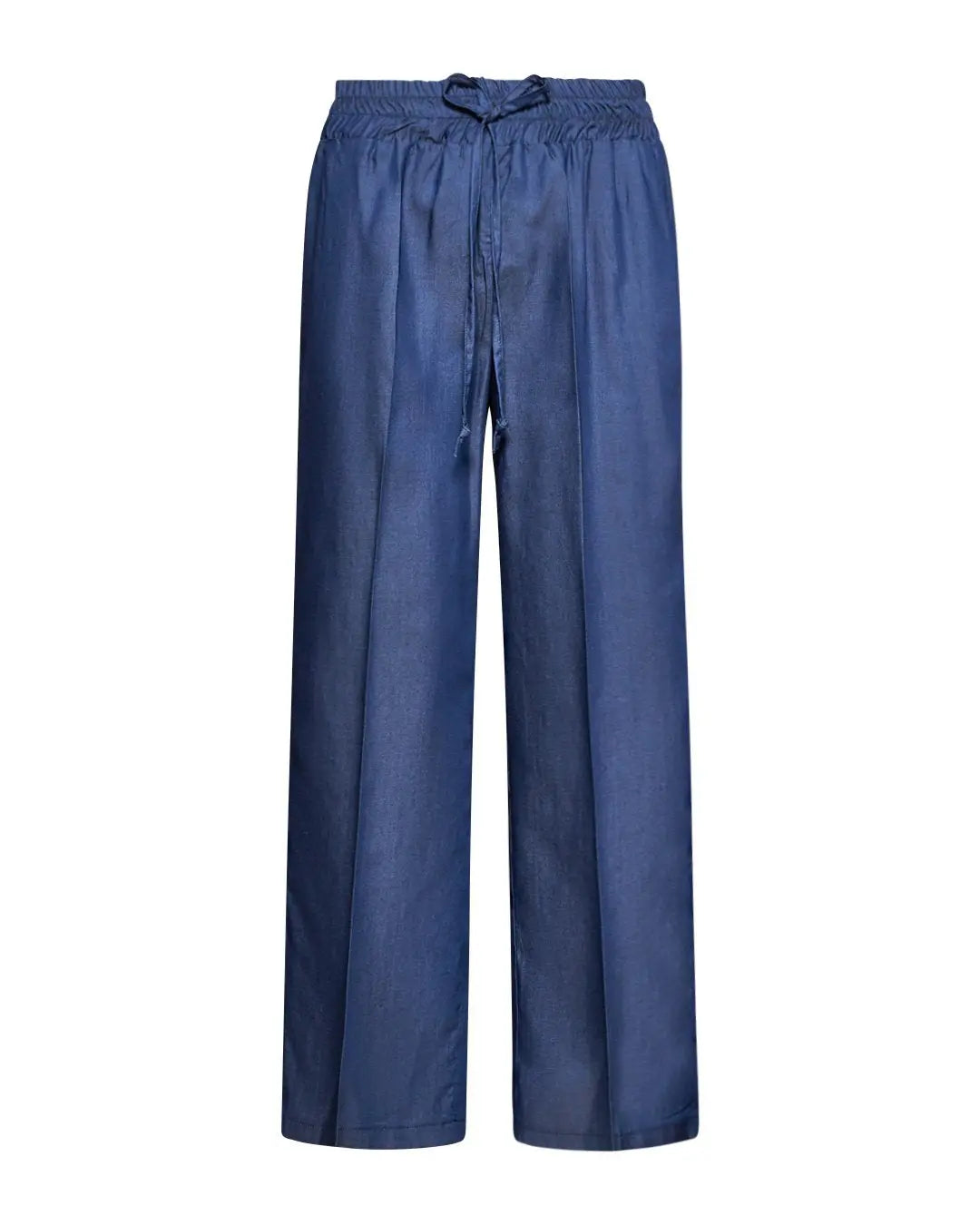 Pantalón recto en chambray de lyocell con cintura con cordón. AZUL