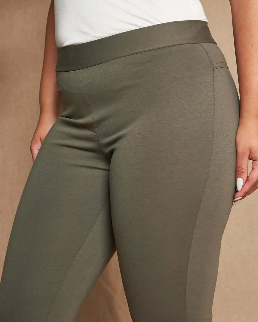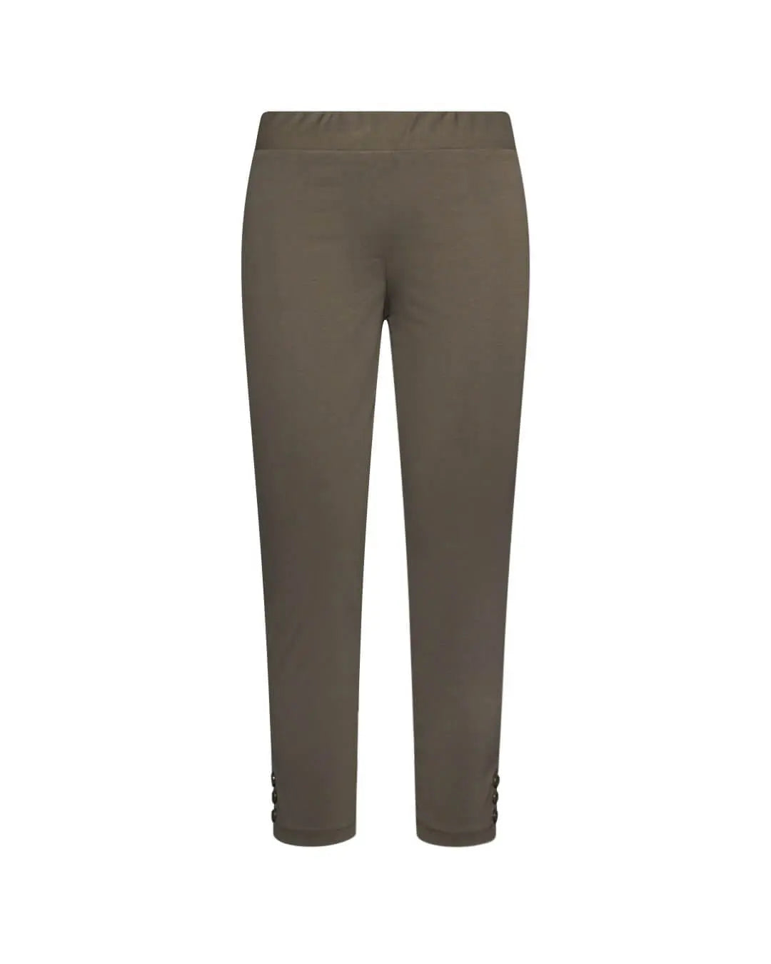 Pantalón capri ajustado en jersey de mezcla de algodón elástico de color liso con detalle de botones. MILITAR