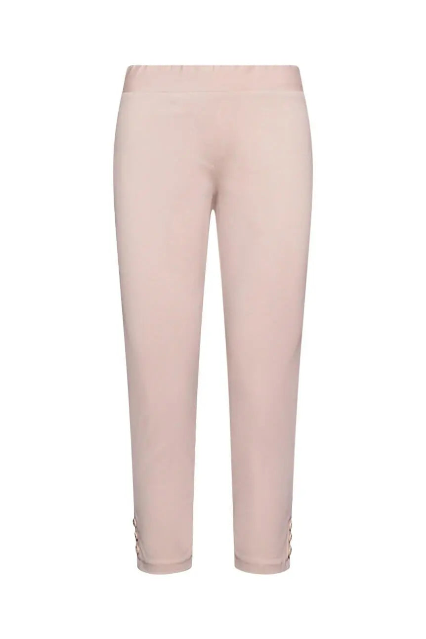 Pantalón capri ajustado en jersey de mezcla de algodón elástico de color liso con detalle de botones. BEIGE