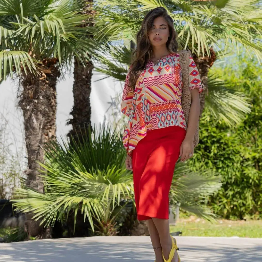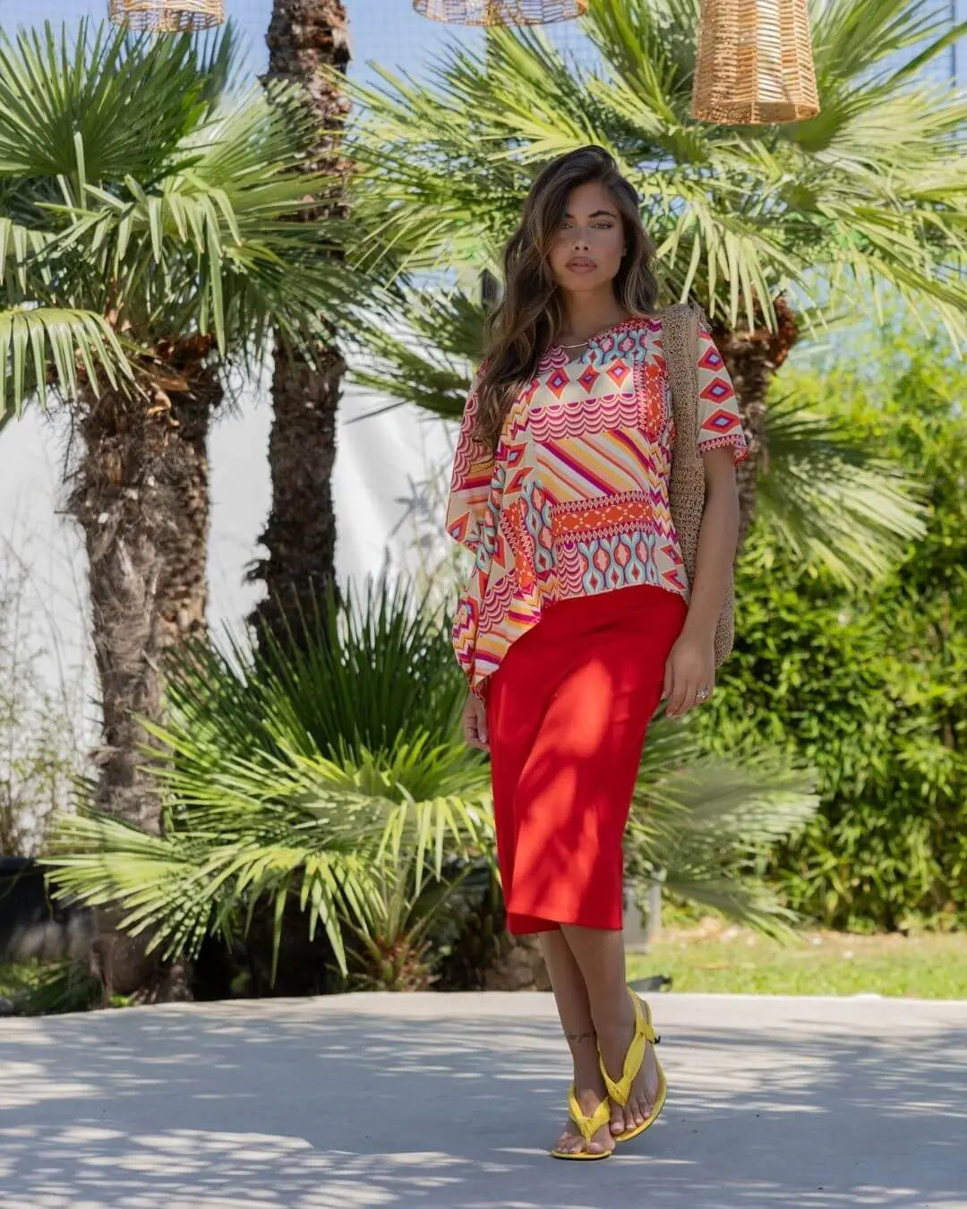 Bermudas de cady elástico de color liso con cierre de cremallera lateral. ROJO