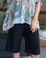 Bermudas de cady elástico de color liso con cierre de cremallera lateral. NEGRO