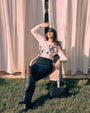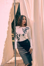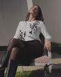 Suéter de cuello redondo con bordado de lentejuelas en la parte delantera BLANCO ROJO