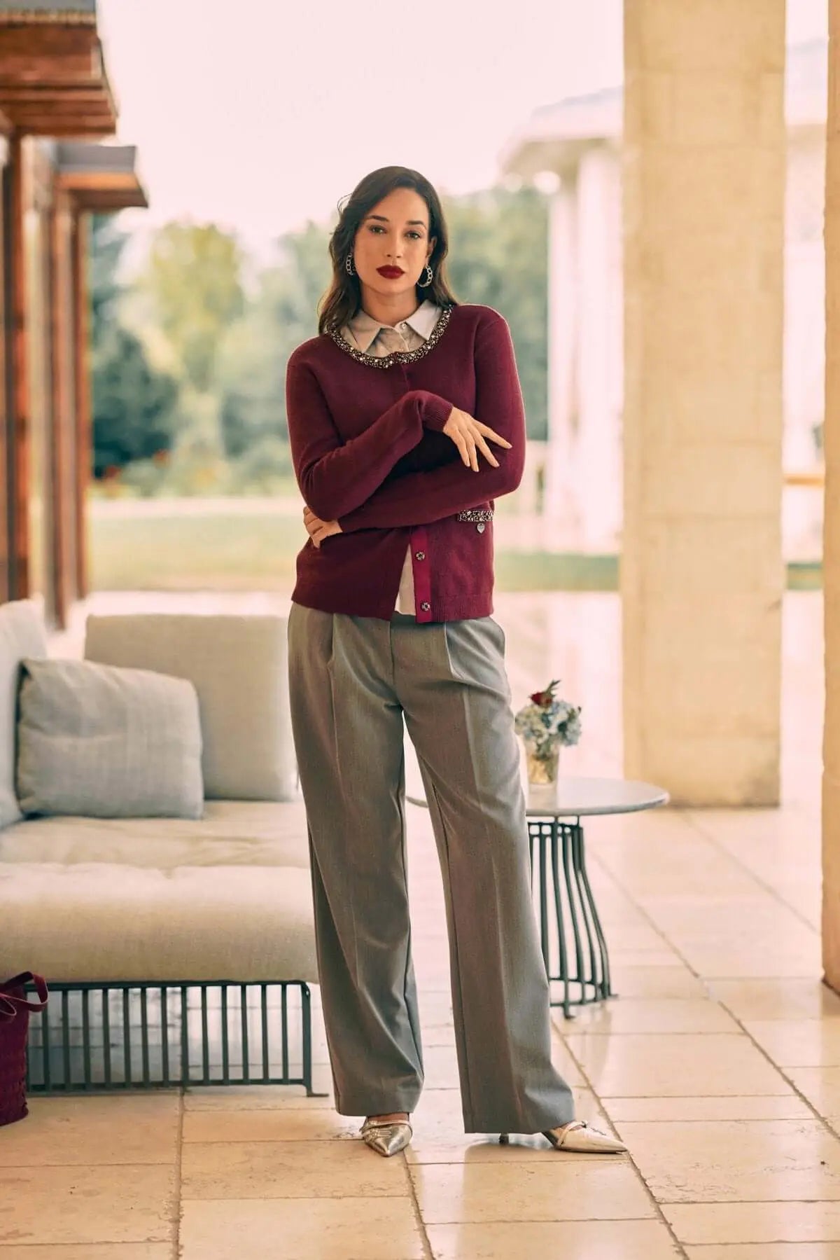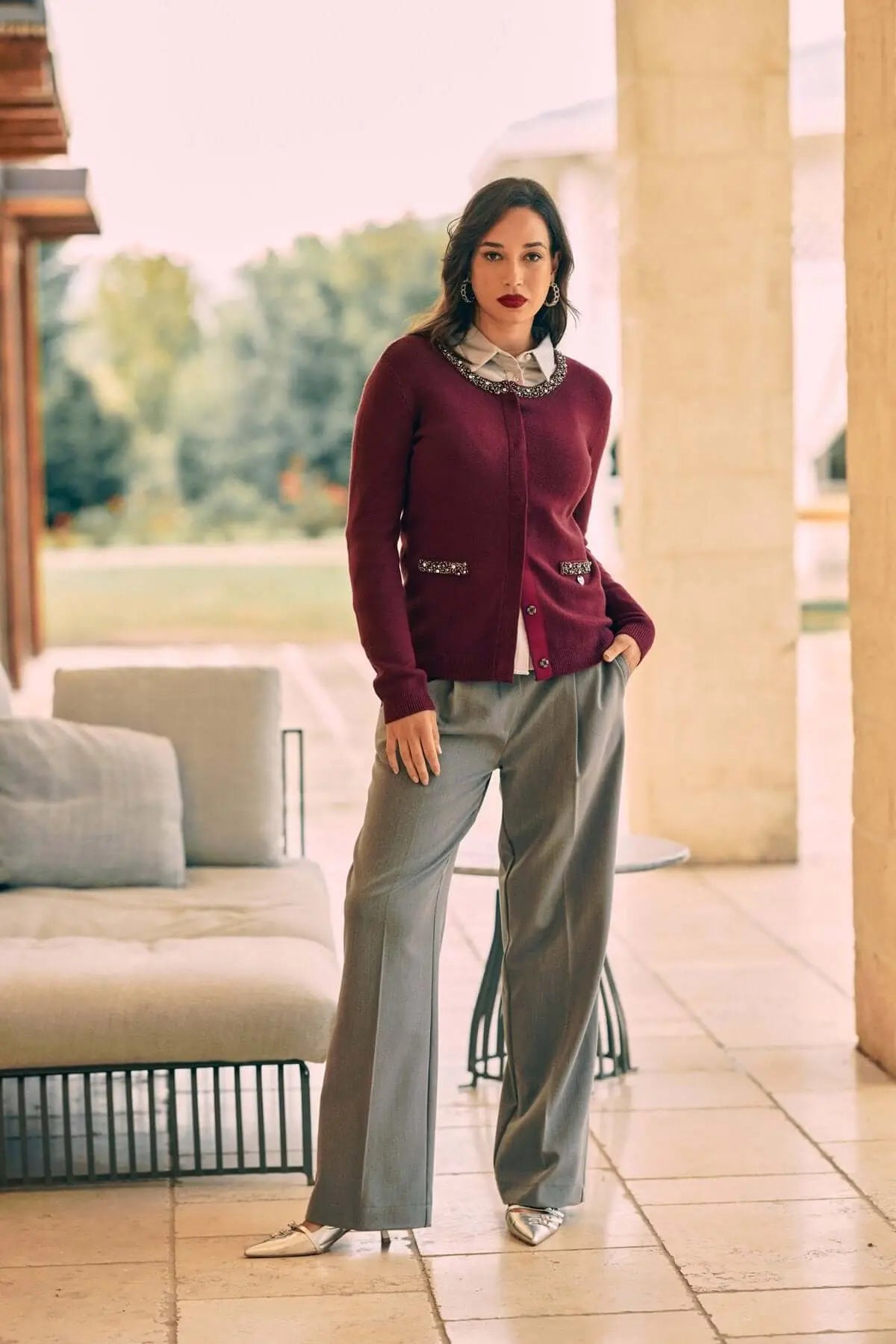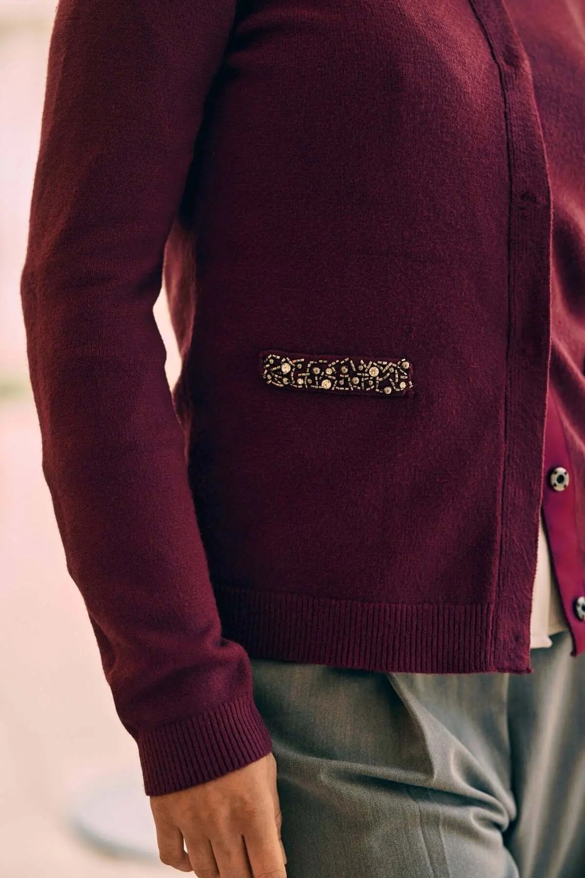 Cárdigan negro de botonadura sencilla con detalles joya BURDEOS