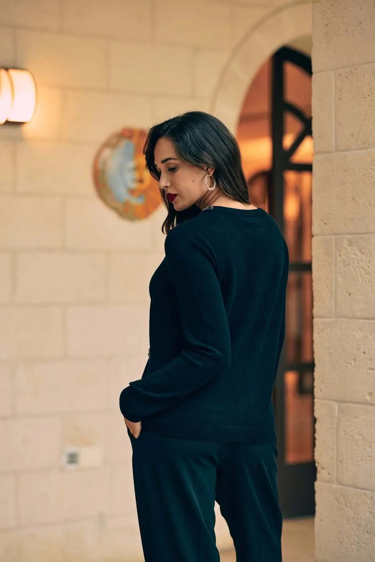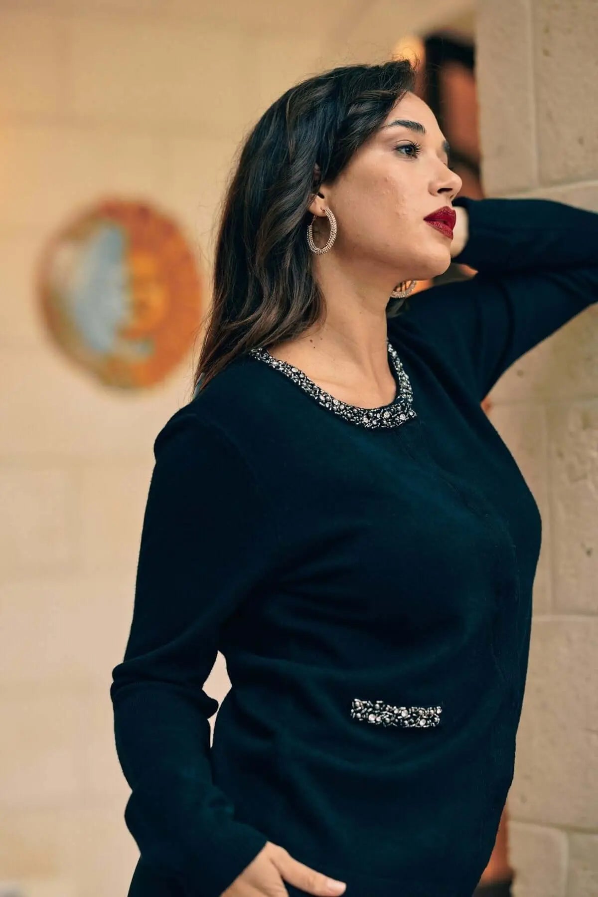 Cárdigan negro de botonadura sencilla con detalles joya NEGRO