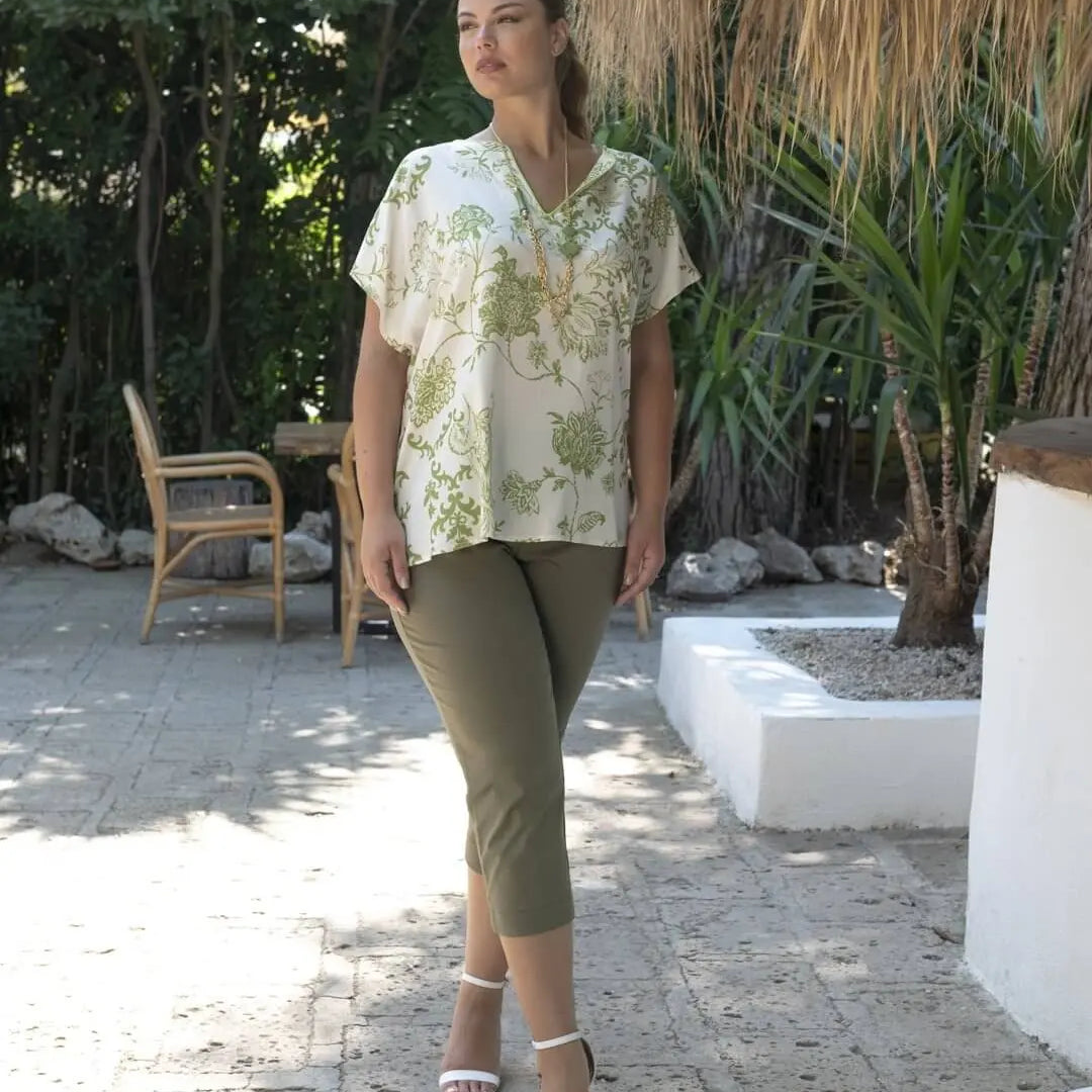 Blusa de viscosa con escote en V y manga kimono BLANCA