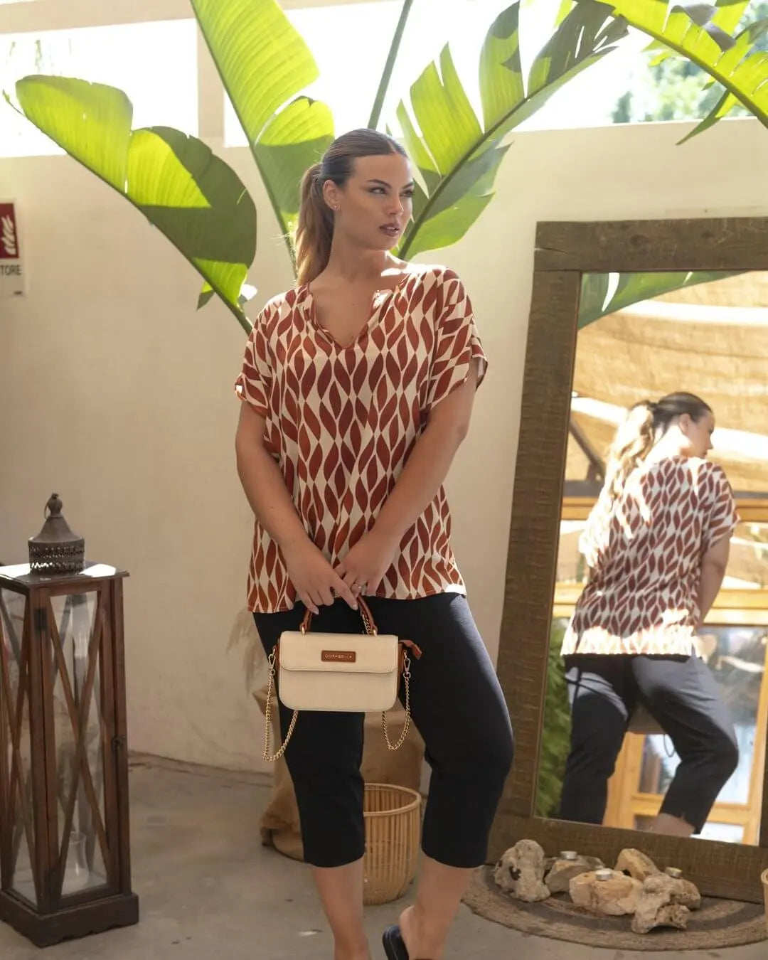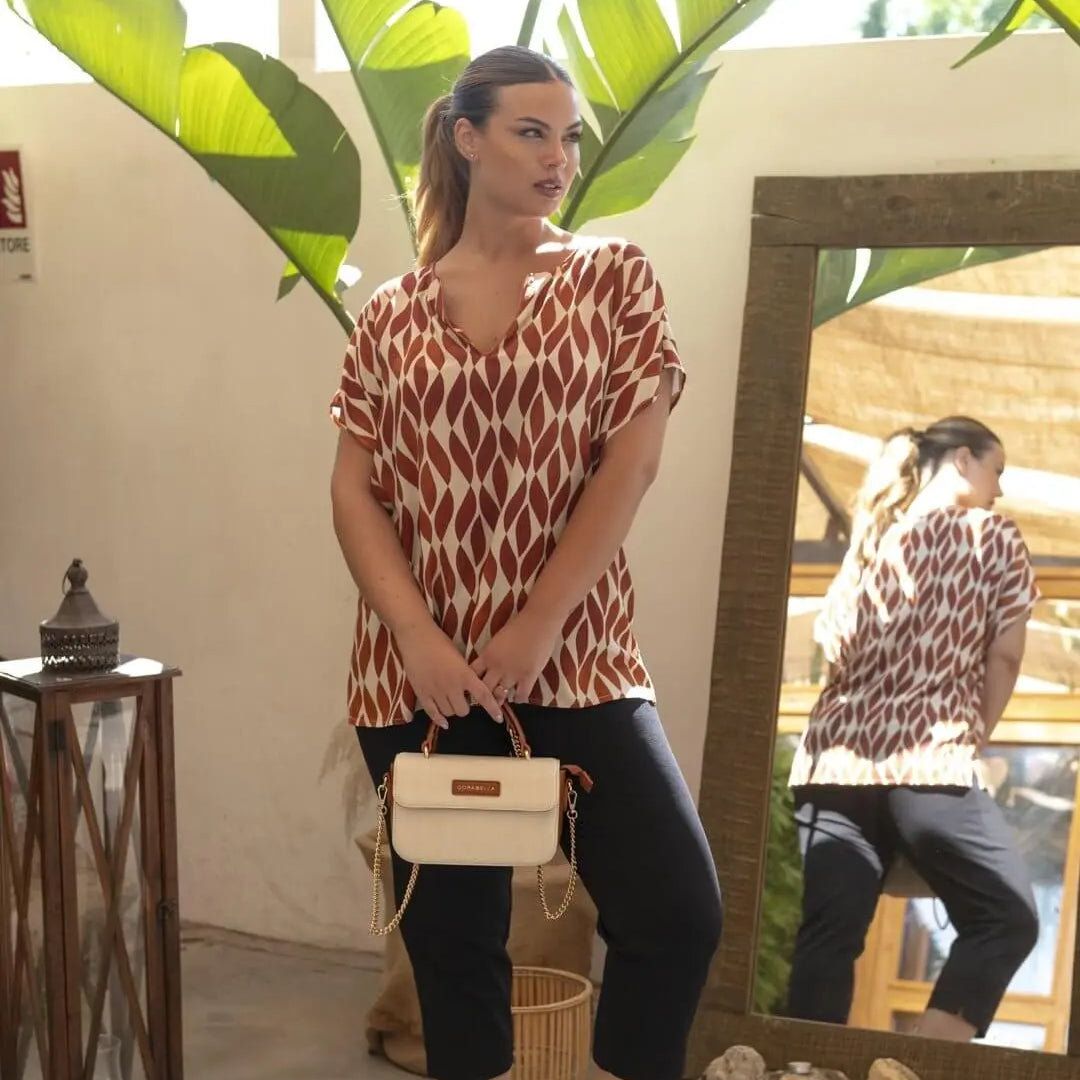 Blusa de viscosa con escote en V y manga kimono ROJA