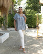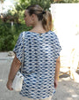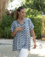 Blusa de viscosa con cuello en V y manga kimono AZUL
