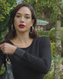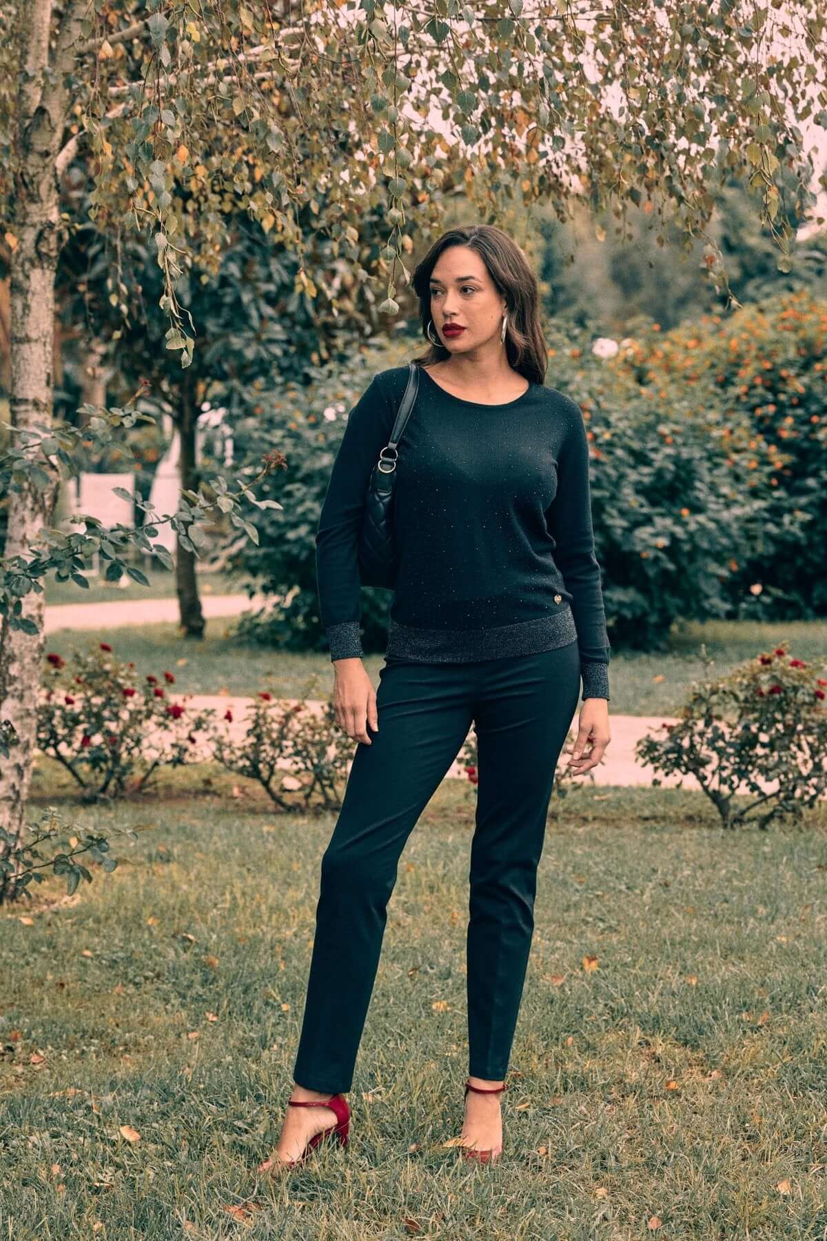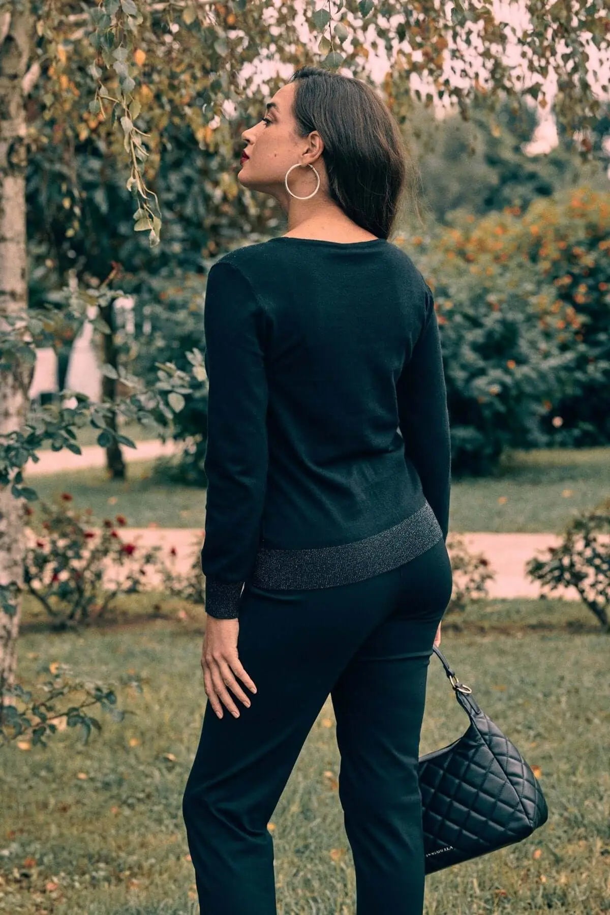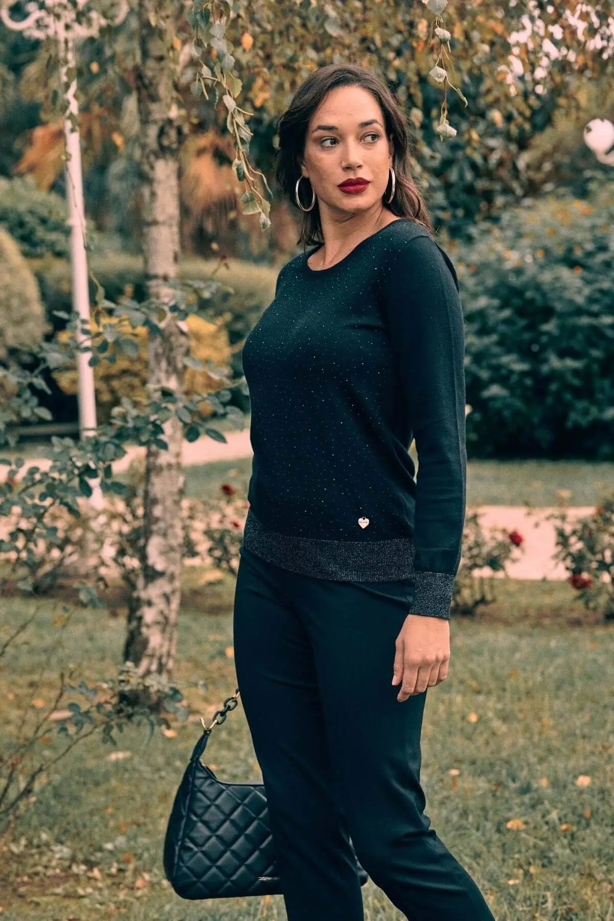 Jersey de cuello redondo con detalles de pedrería y lurex NEGRO