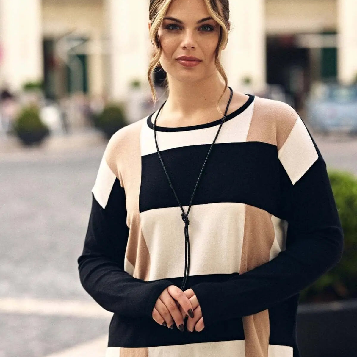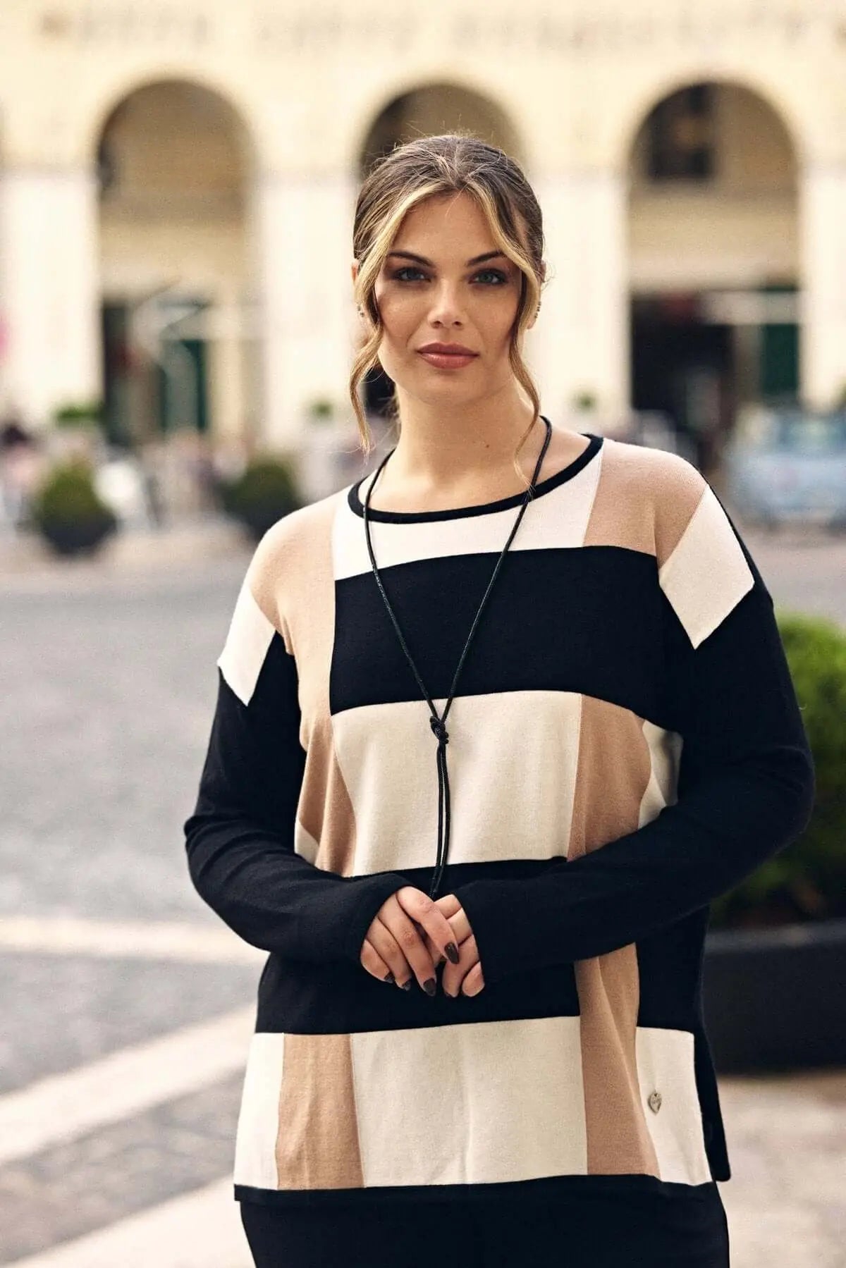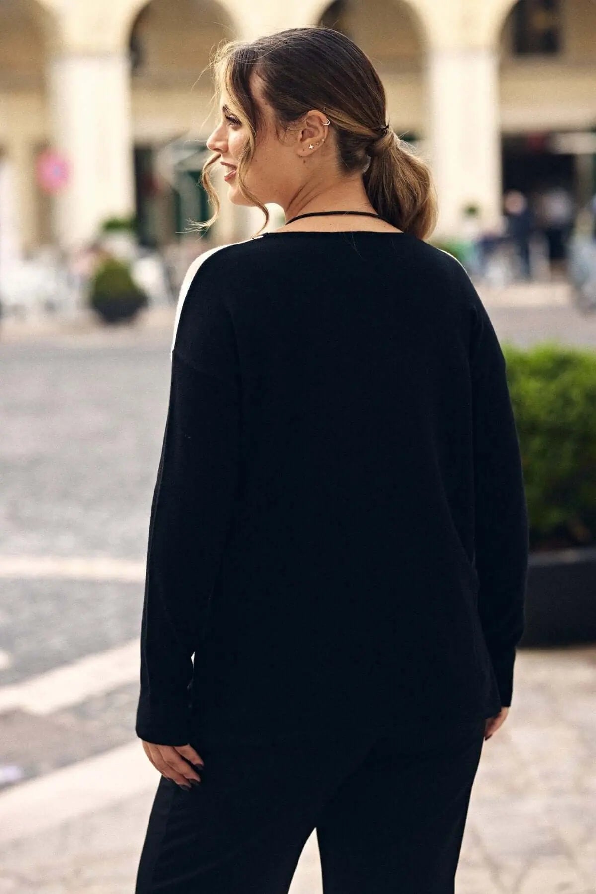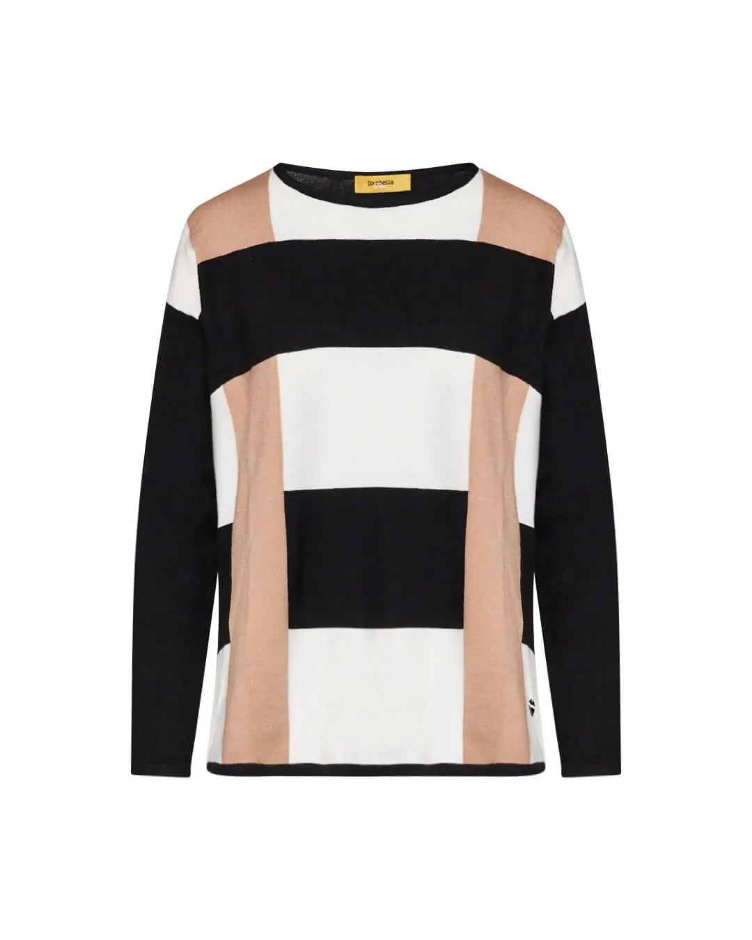 Suéter de cuello redondo con estampado de rayas ópticas NEGRO