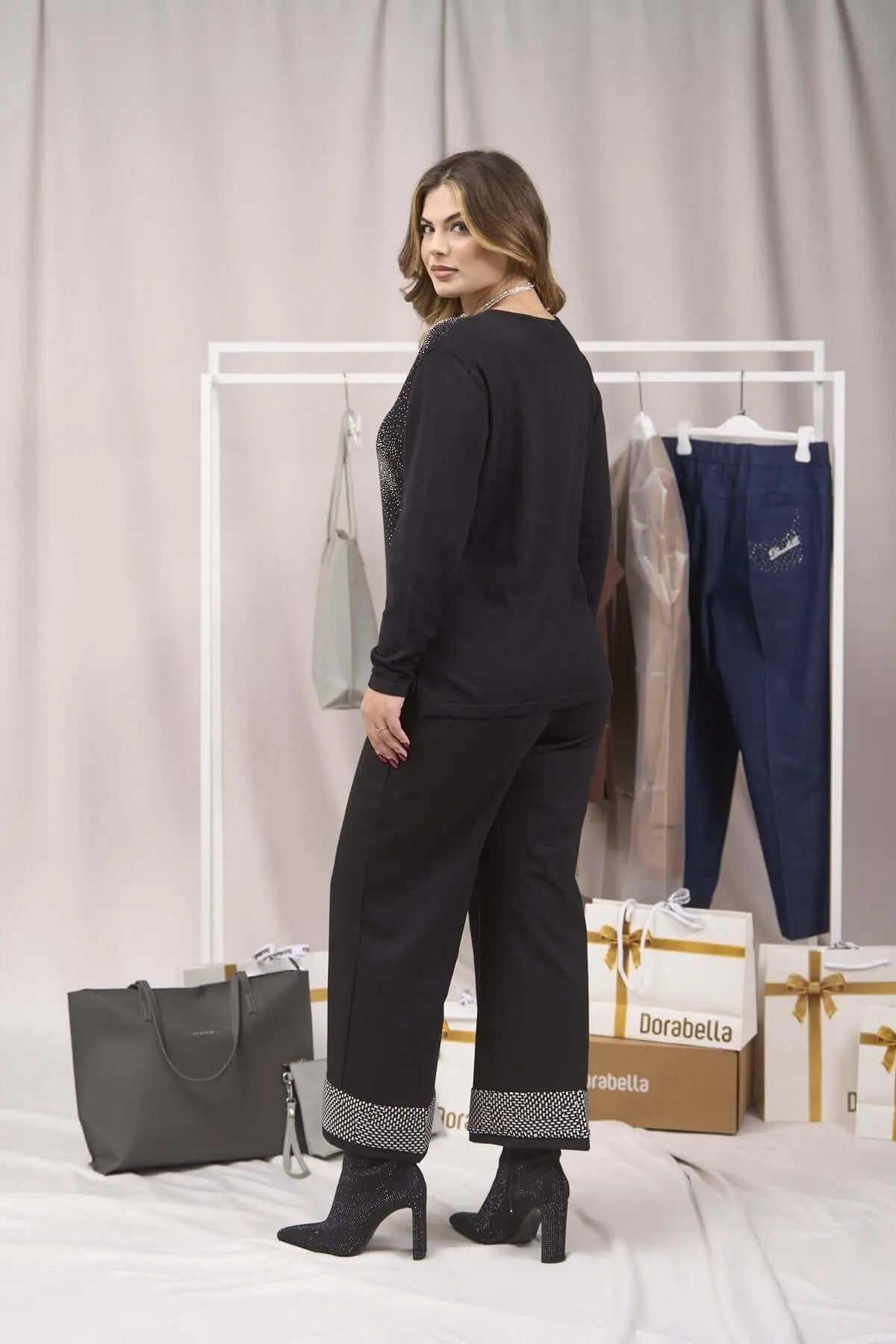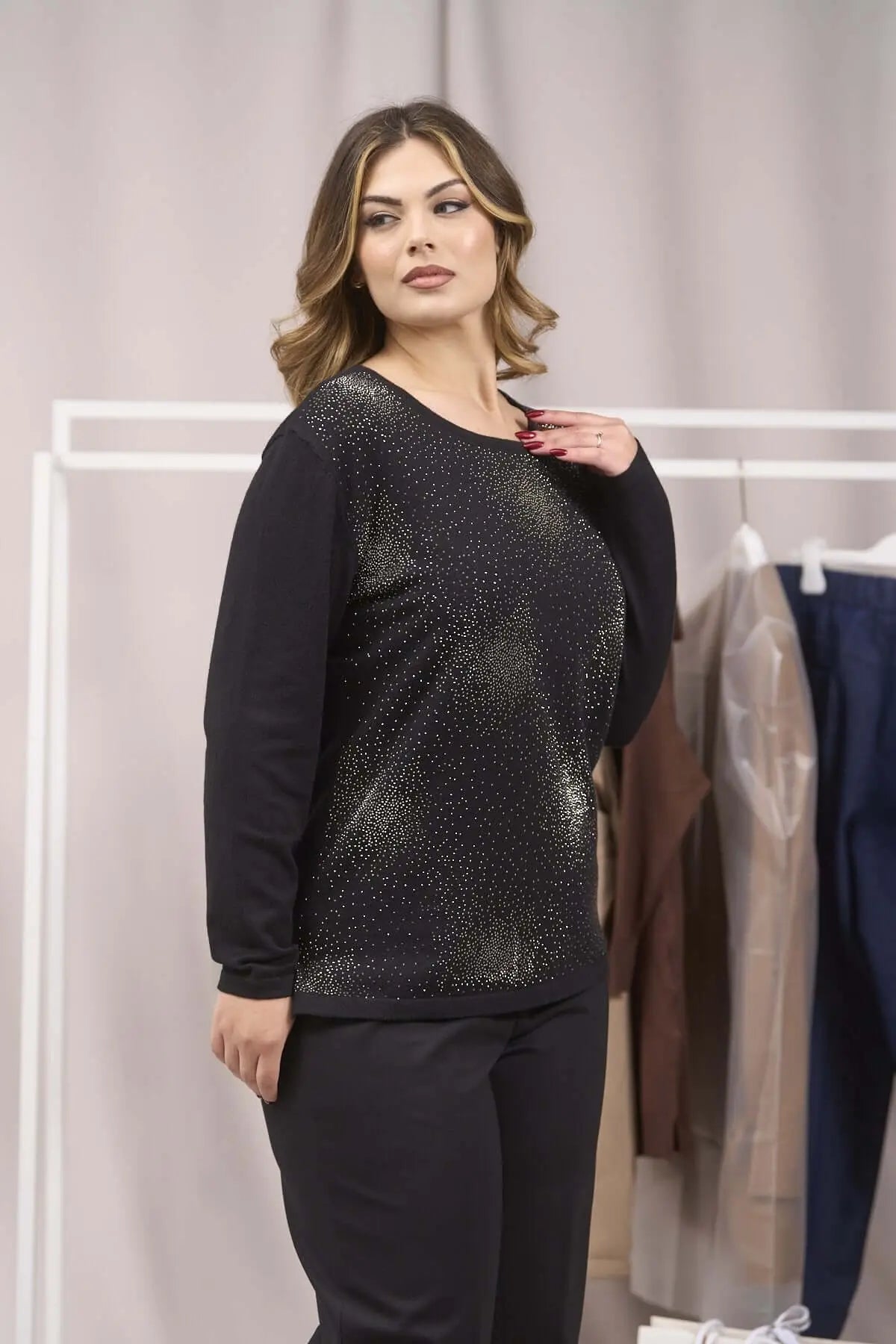 Suéter de cuello redondo con aplicaciones frontales NEGRO