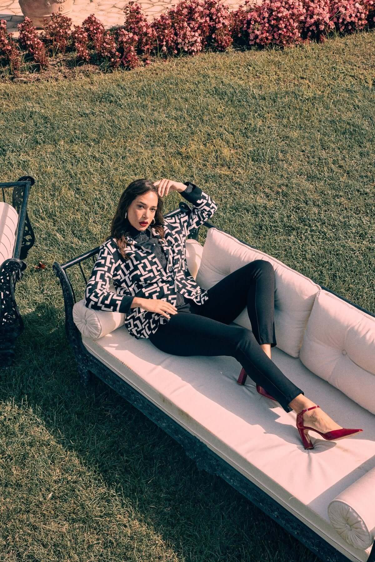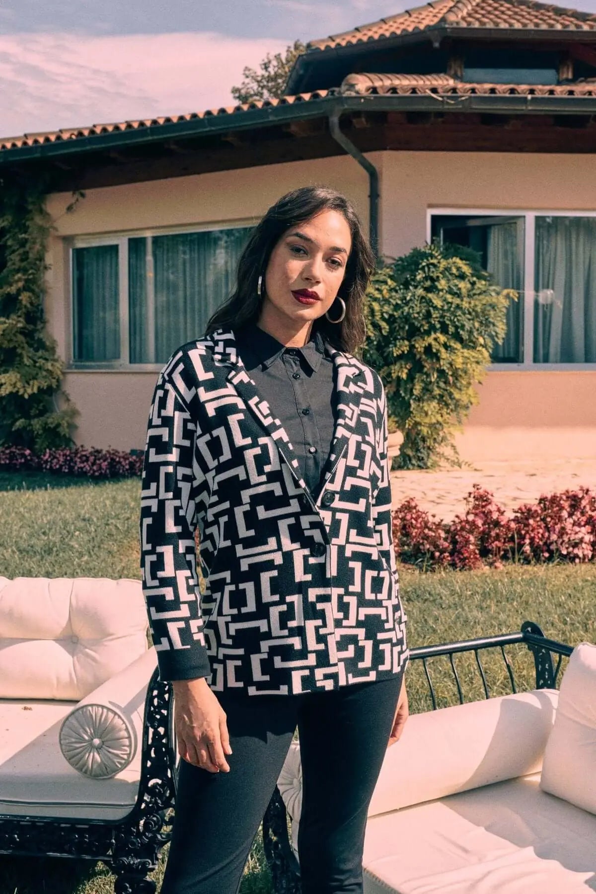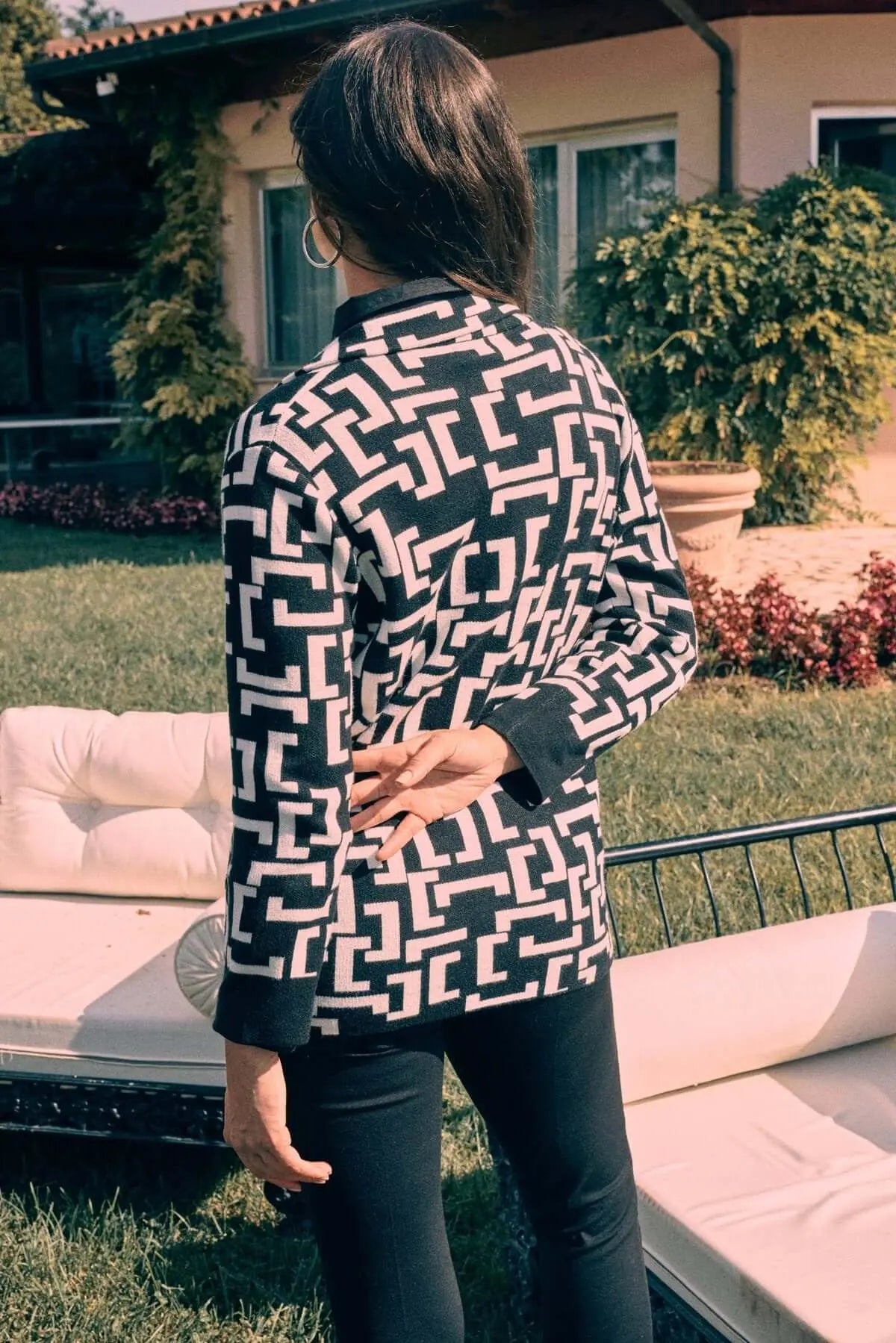Chaqueta de punto de botonadura sencilla con estampado bicolor NEGRO