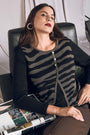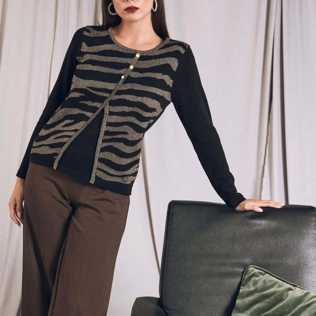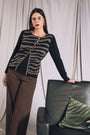 Suéter con motivo de fantasía y tapeta asimétrica NEGRO