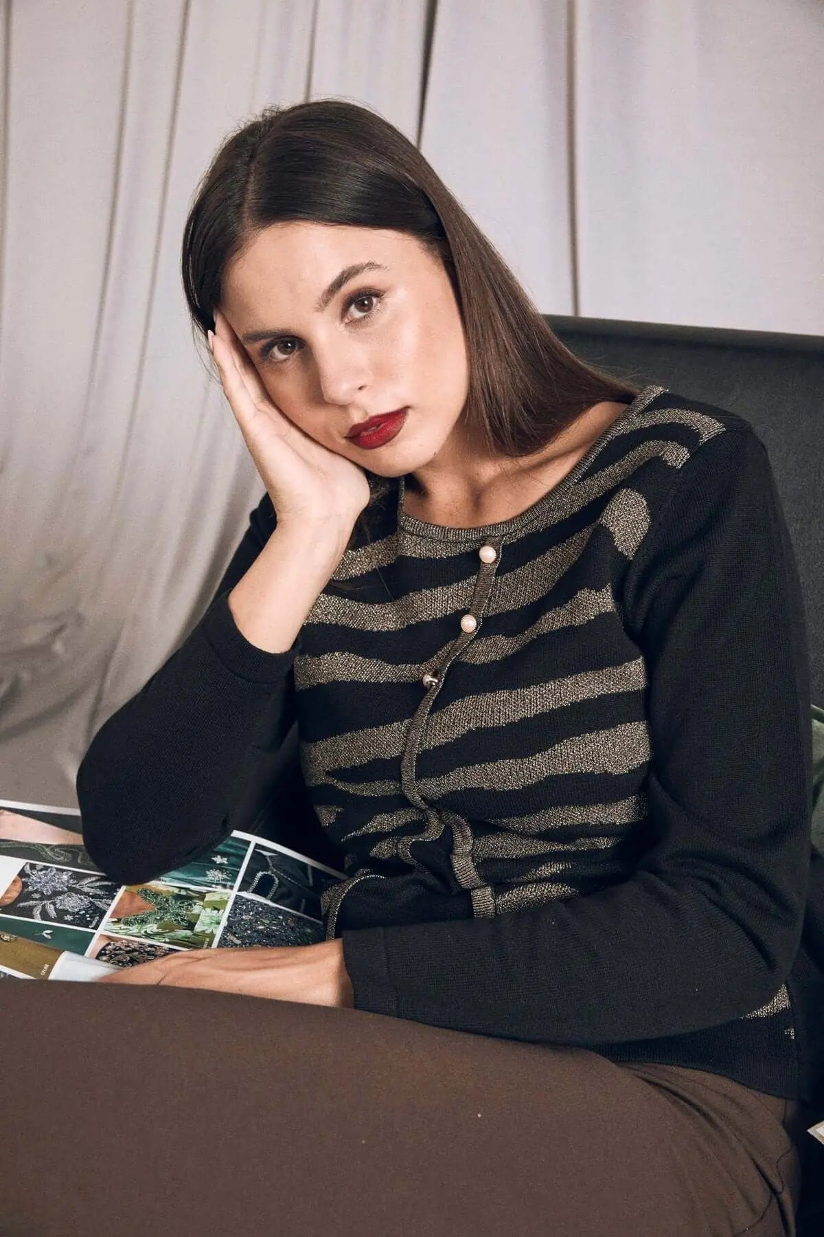 La modelo mide 1,75 m y usa talla M.