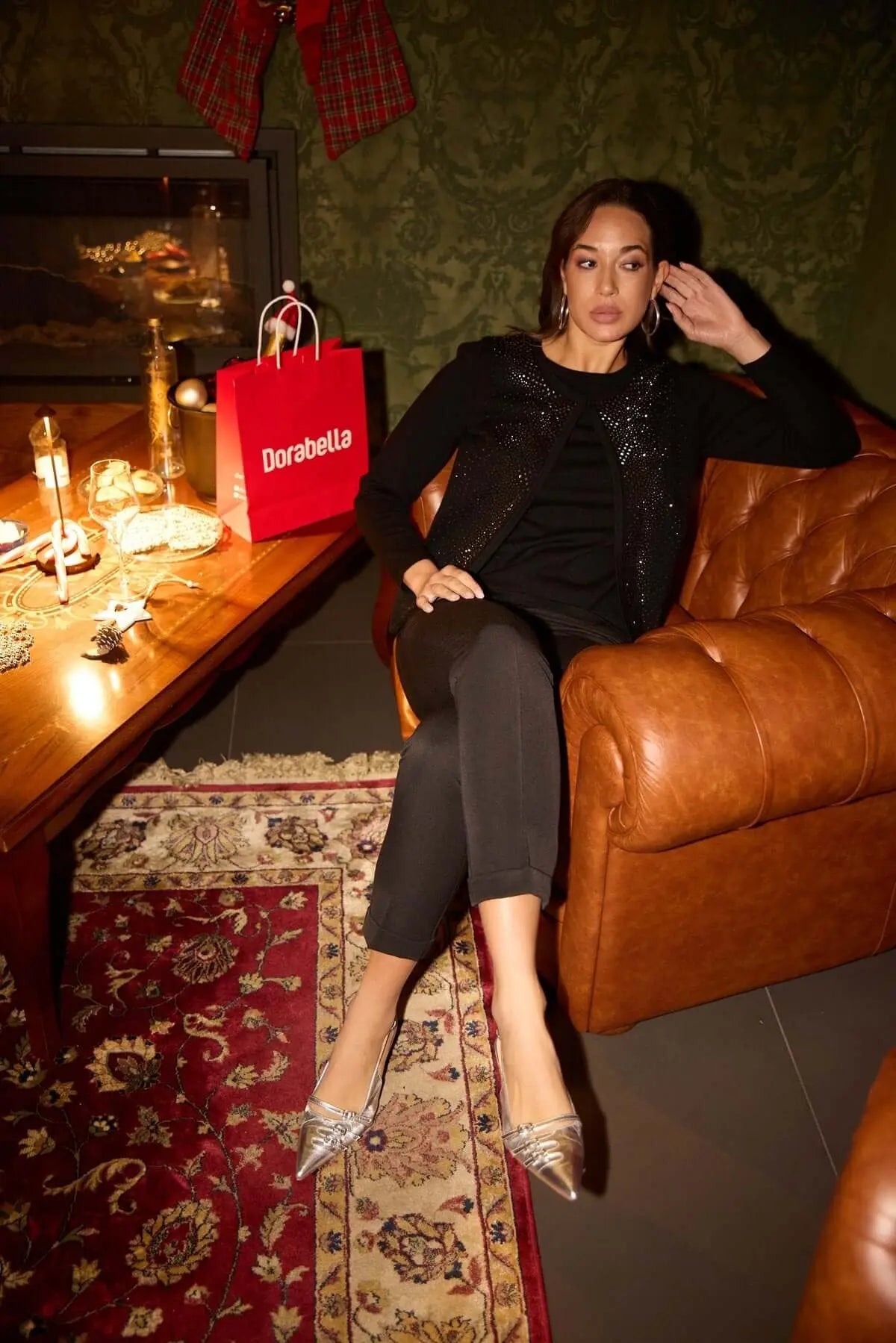 Suéter falso twinset con pedrería en la parte delantera NEGRO