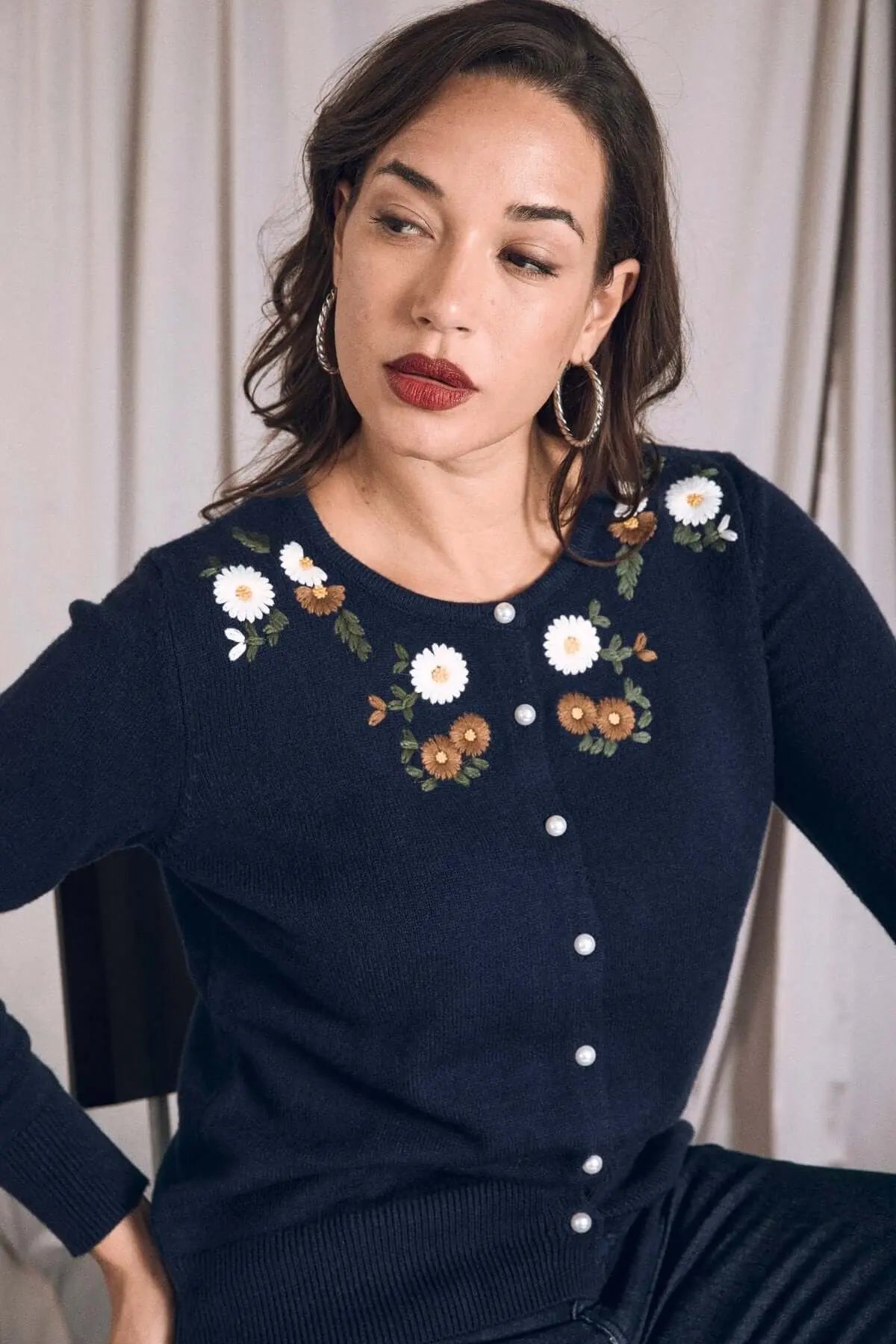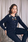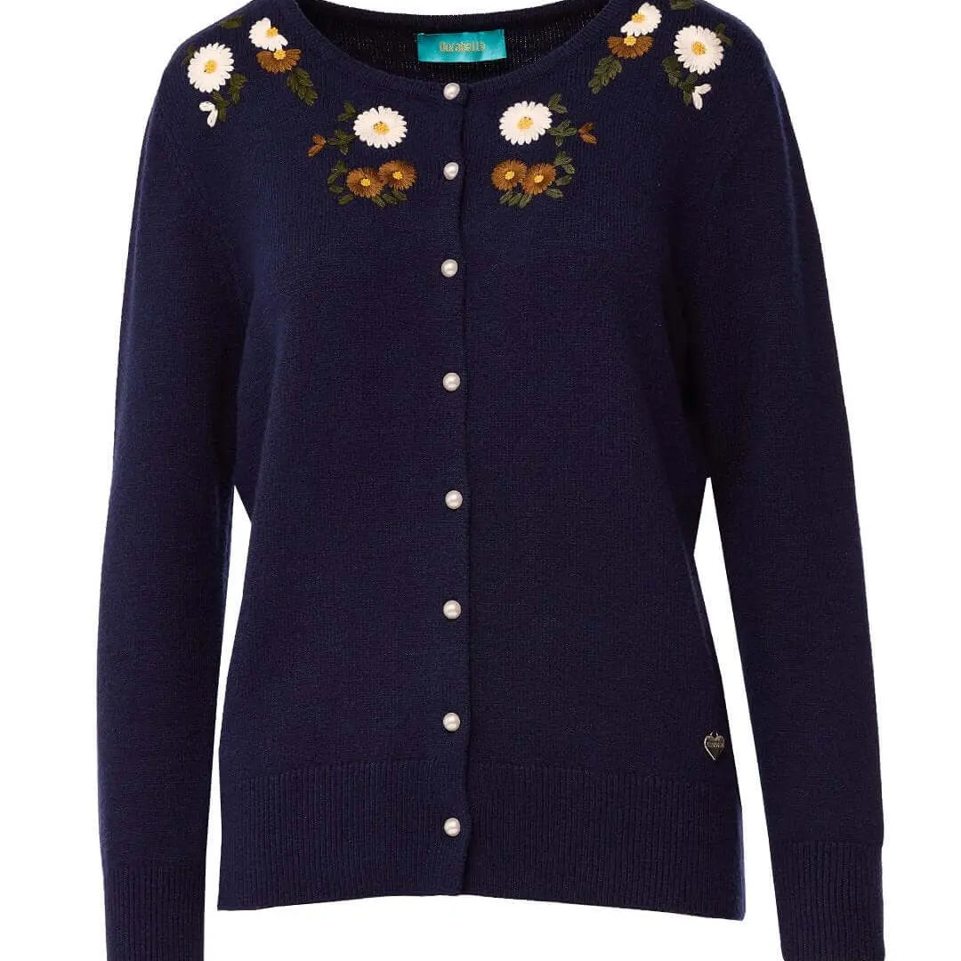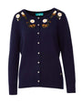 Cárdigan de cuello redondo con botones y flores bordadas AZUL