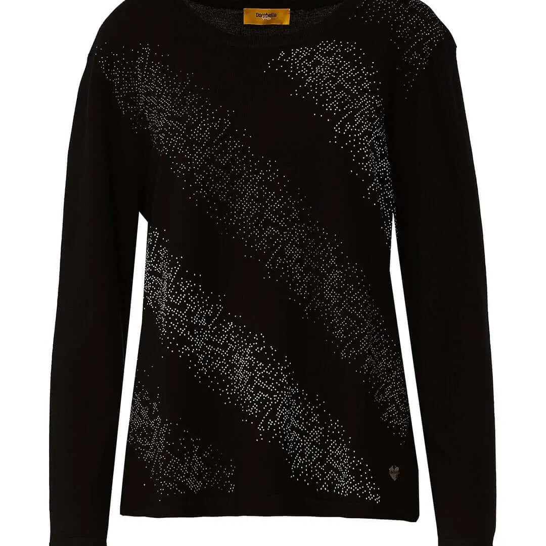 Suéter de cuello redondo con aplicaciones de pedrería en la parte delantera NEGRO