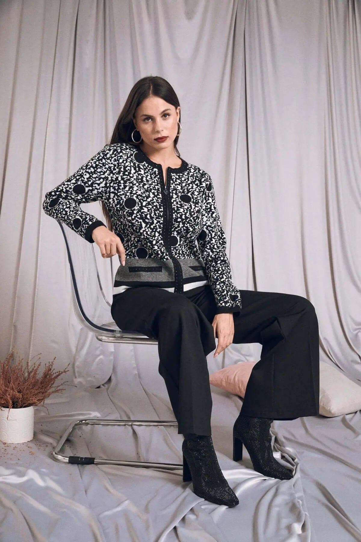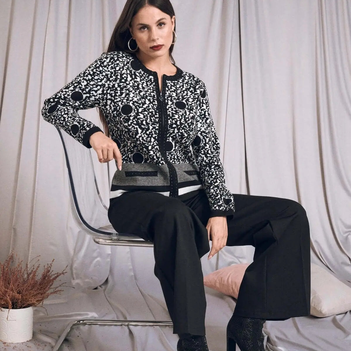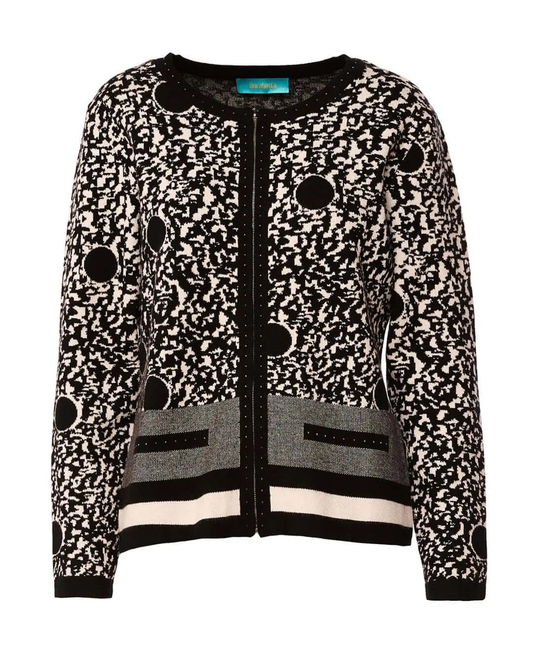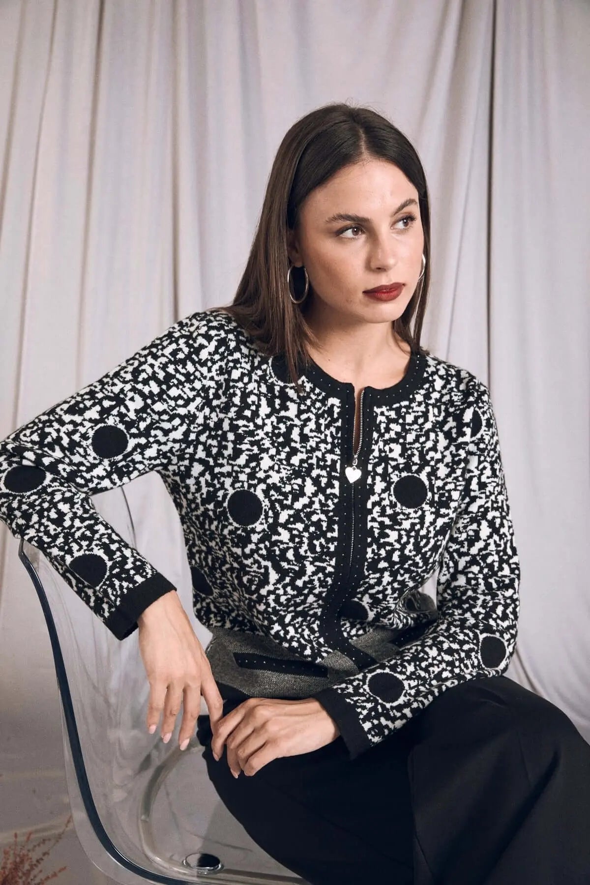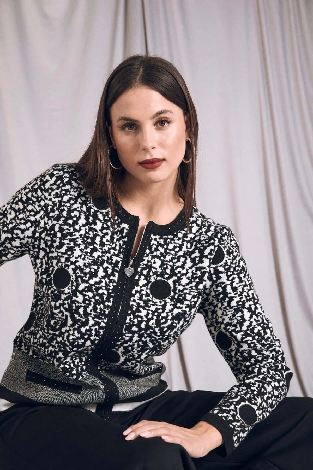 Cárdigan estampado con cremallera y pedrería NEGRO