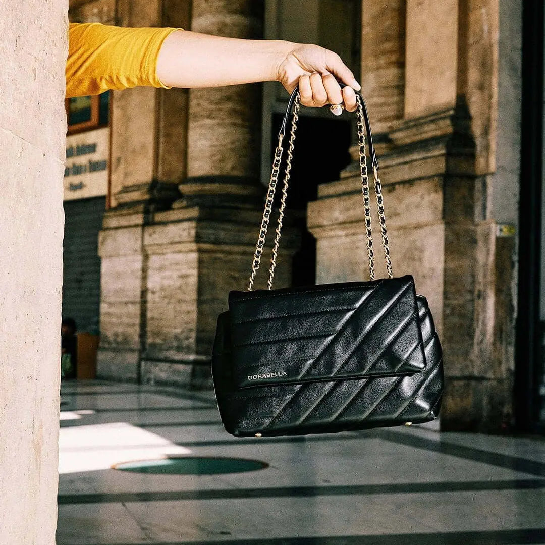 Bolso de hombro con solapa frontal y correa de hombro NEGRO