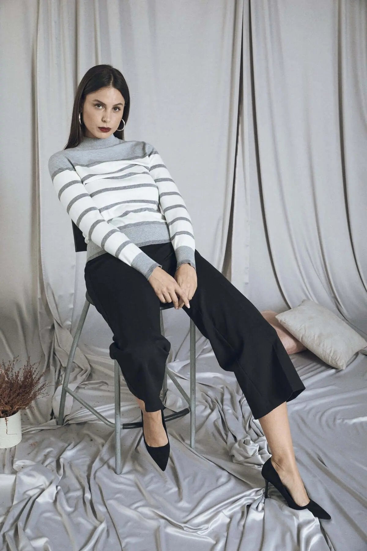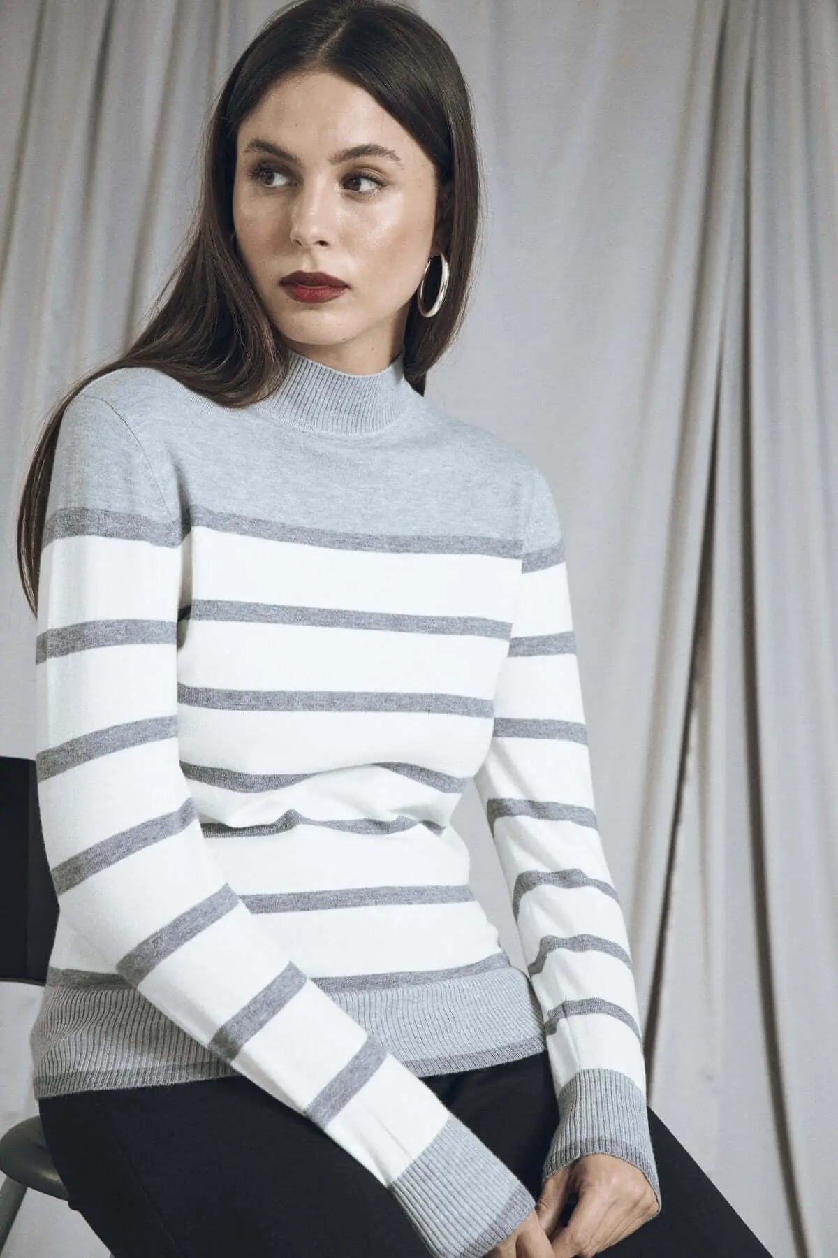 Suéter de cuello alto con estampado de rayas bicolor GRIS MEDIO