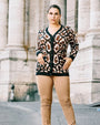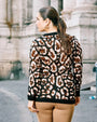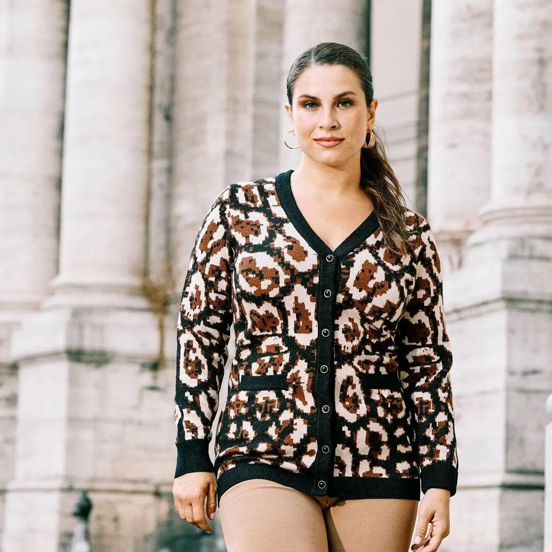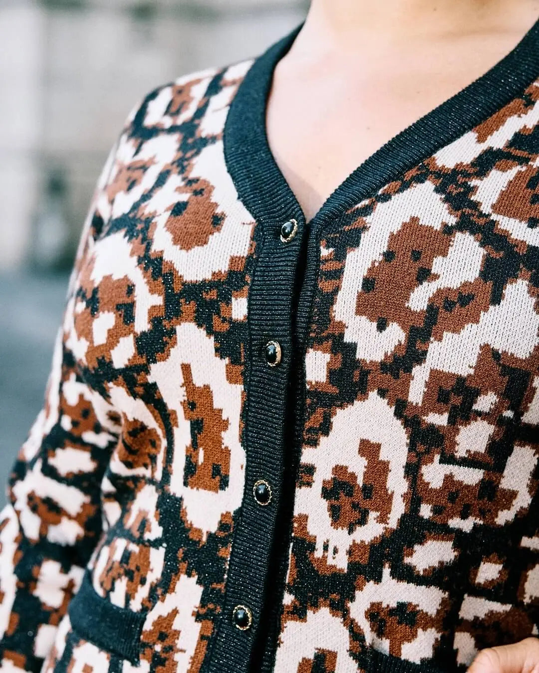 Cárdigan en jacquard animalier con contrastes de colores lisos y botones joya ANIMALIER