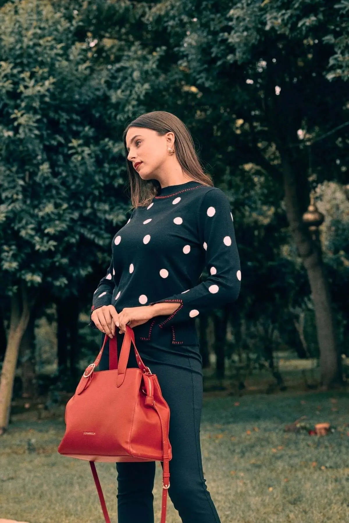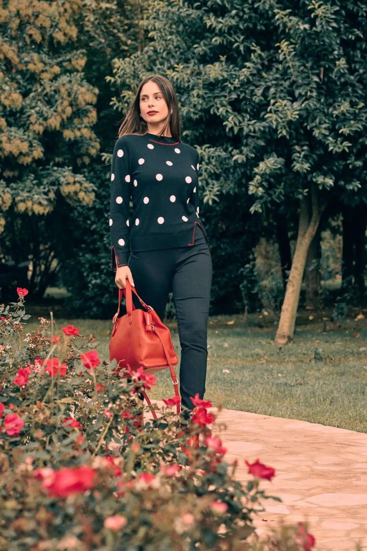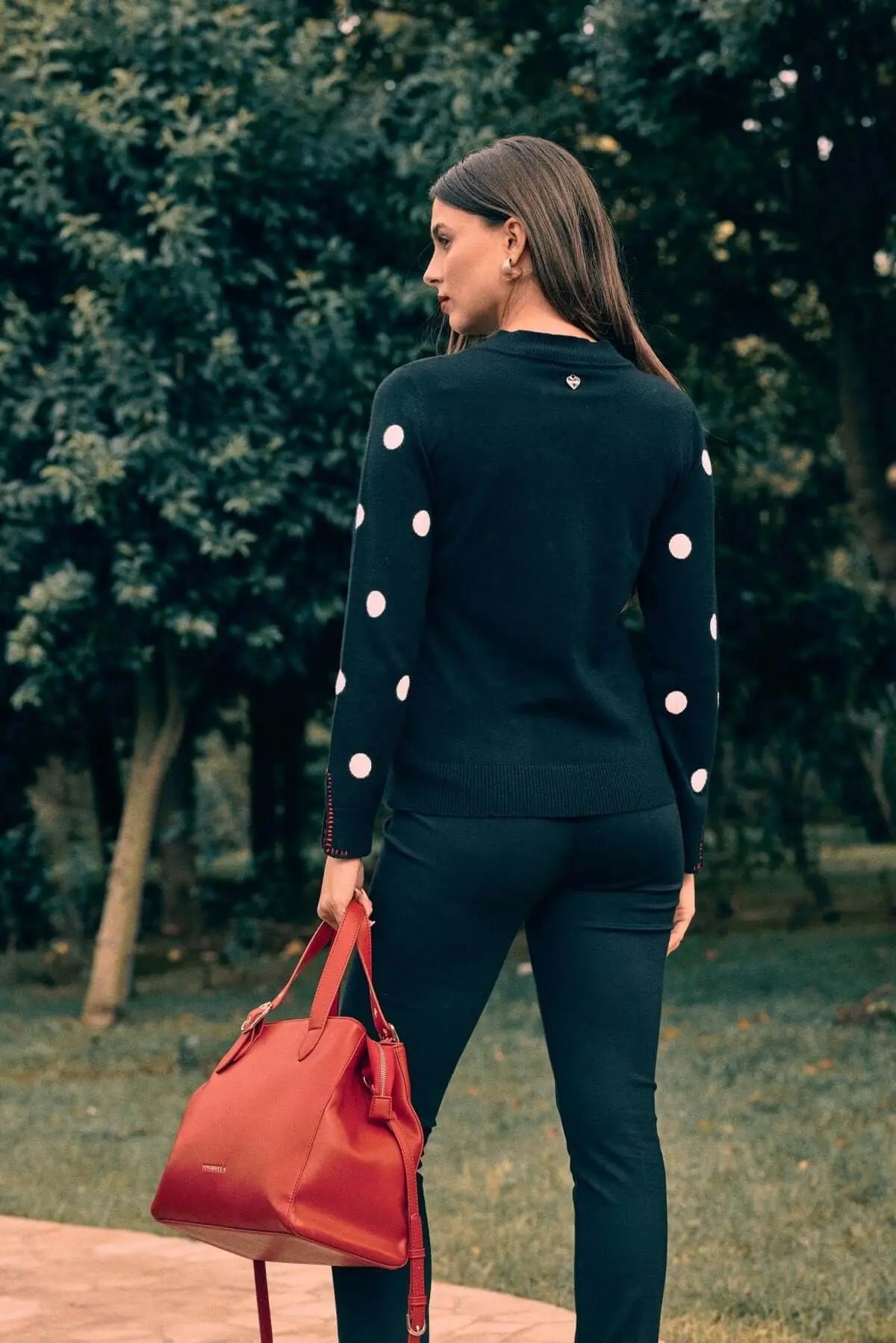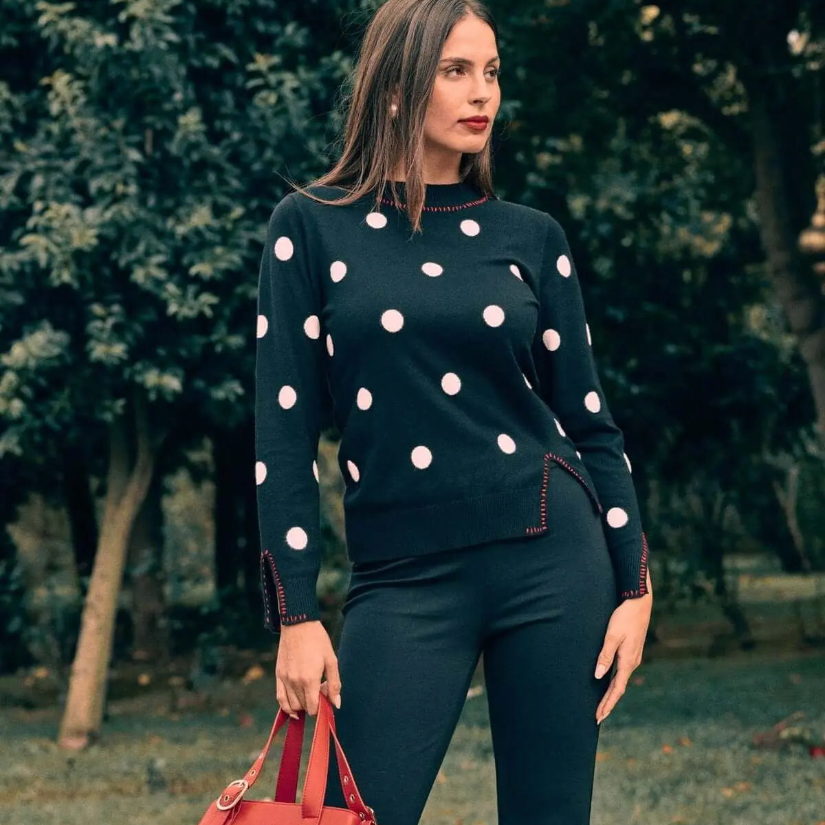 Suéter con estampado de lunares y costuras en contraste NEGRO