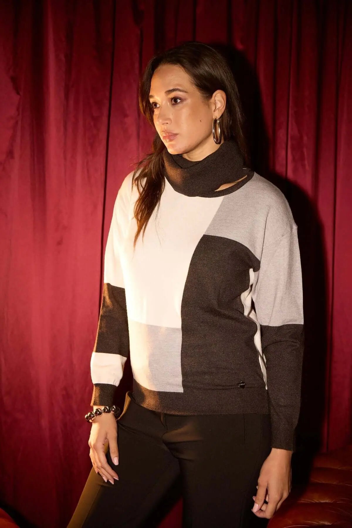 Suéter óptico con cuello alto desmontable ANTRACITA