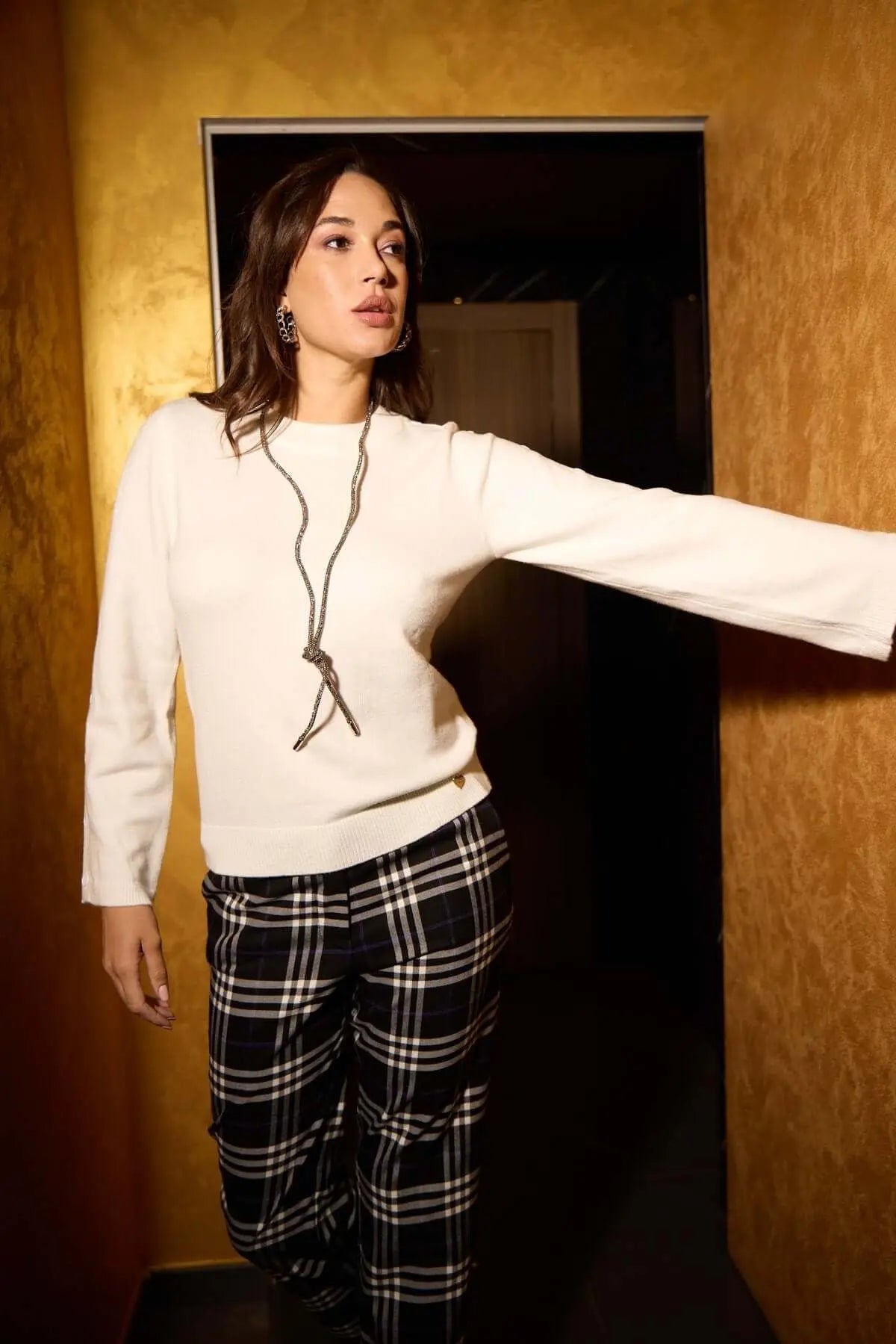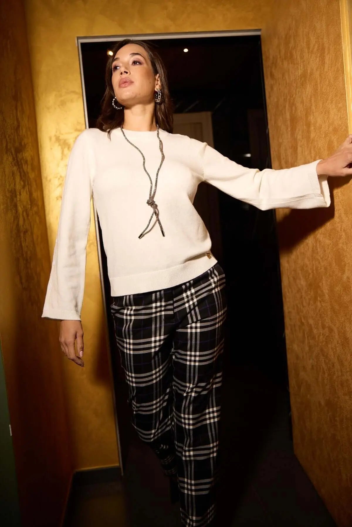 La modelo mide 1,75 m y usa talla M.