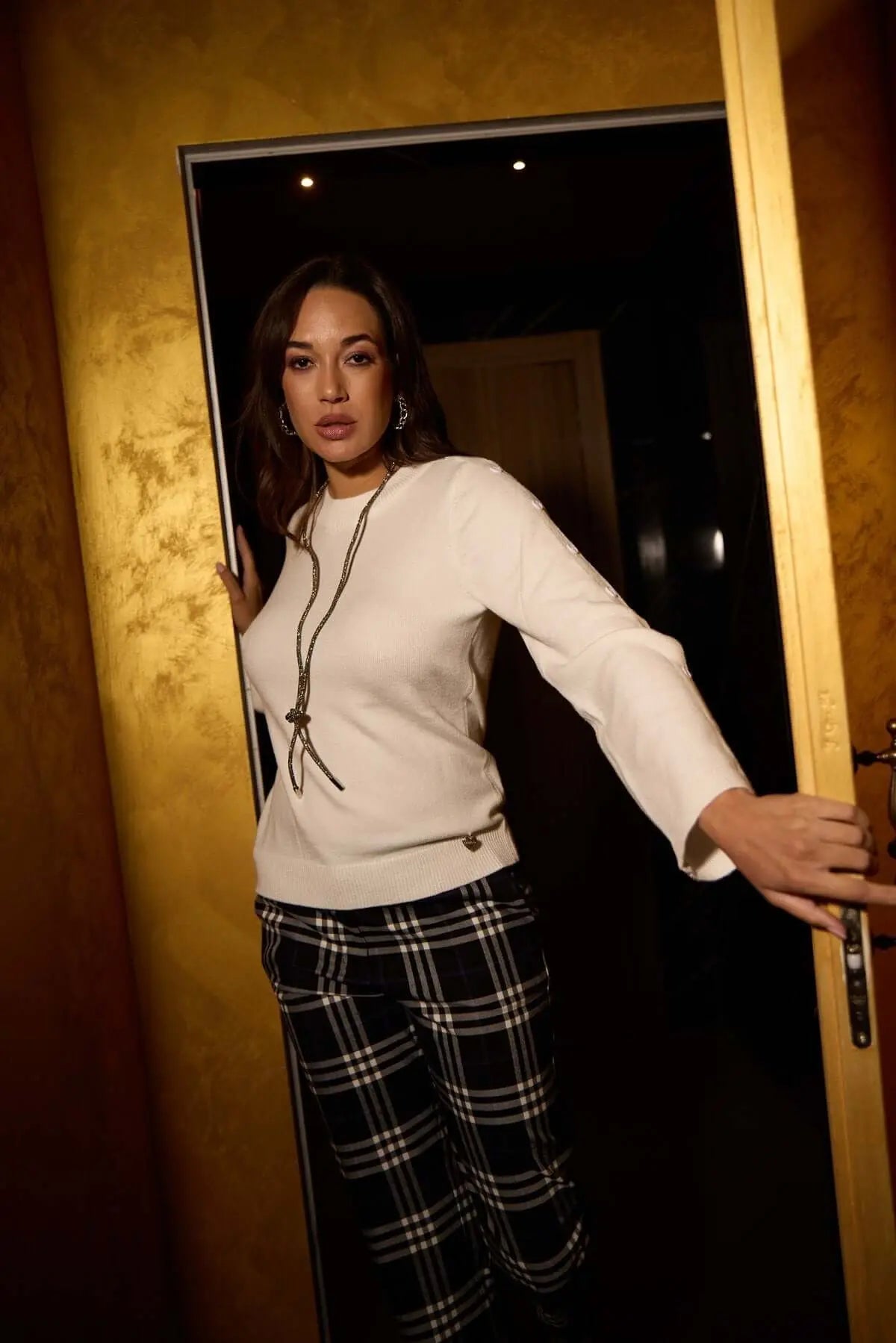 Suéter de cuello redondo con botones decorativos OFF WHITE