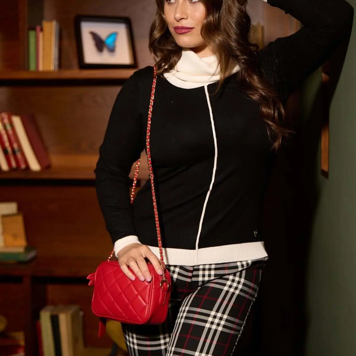 Suéter con cuello alto desmontable e inserciones en contraste OFF WHITE
