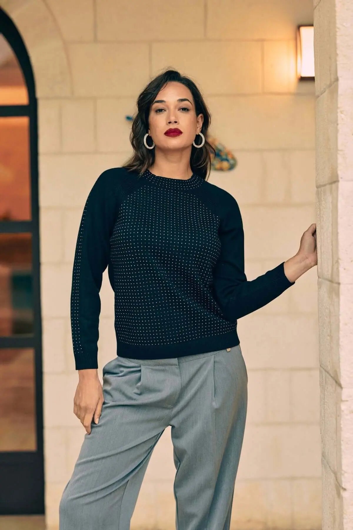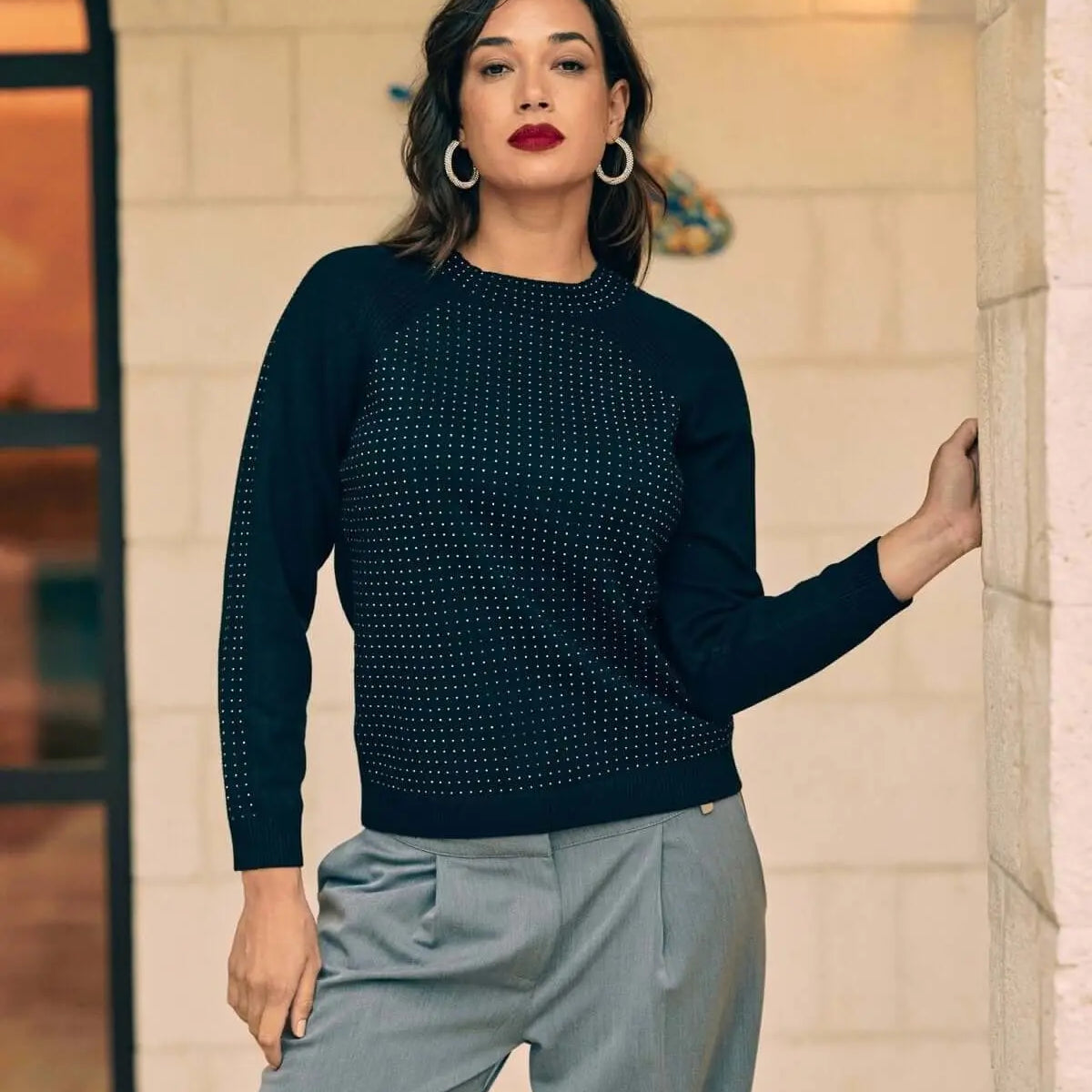 Suéter de manga raglán con aplicaciones de pedrería NEGRO
