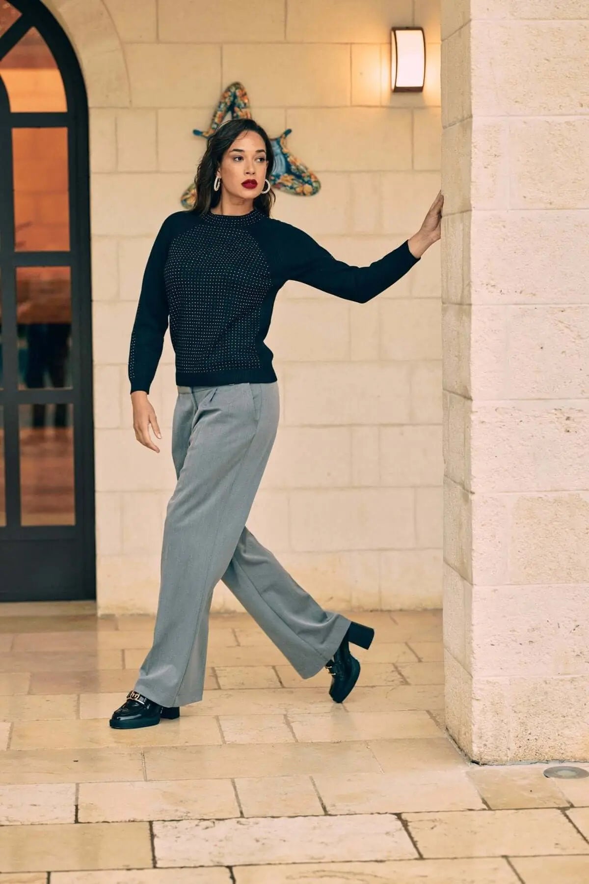 La modelo mide 1,75 m y usa talla M.