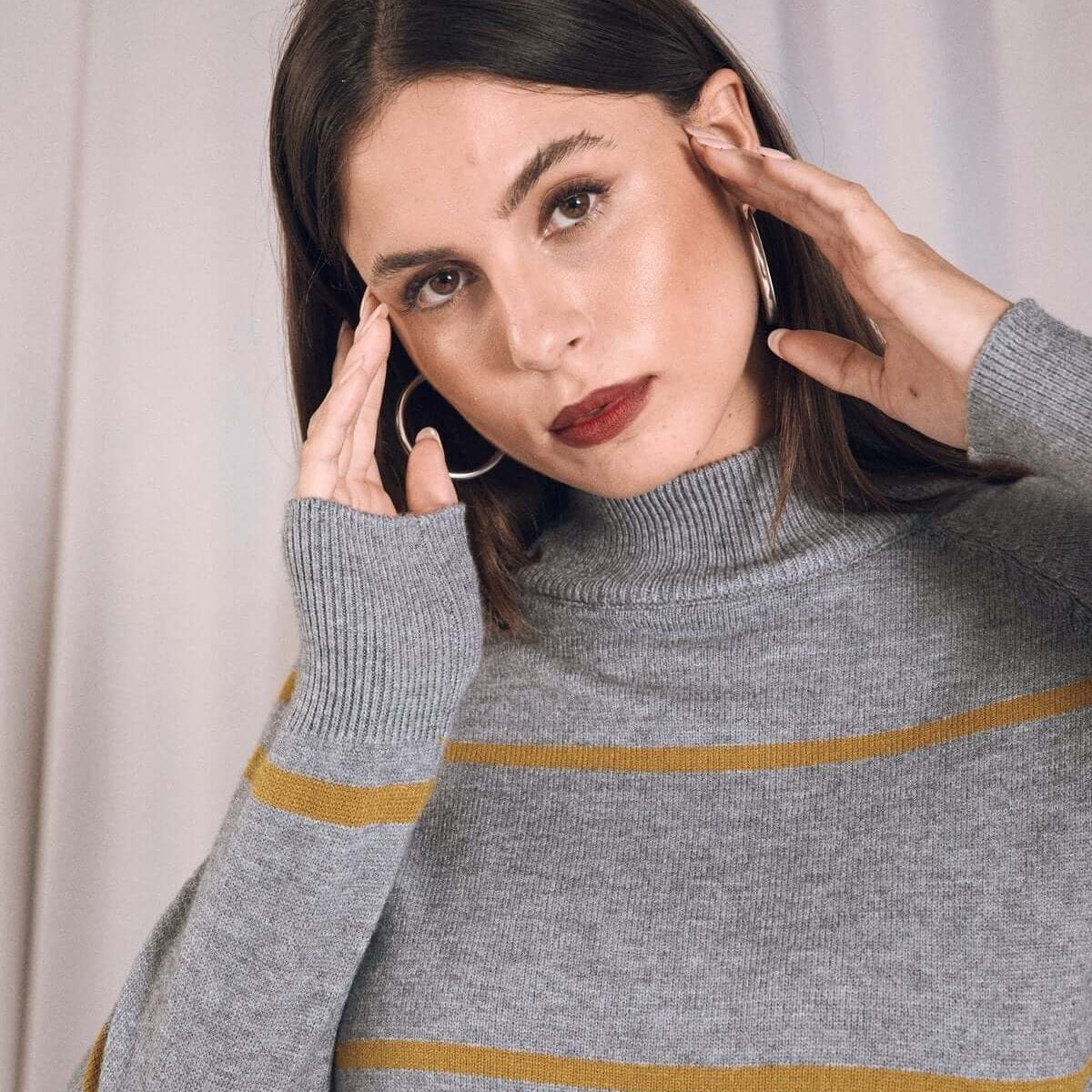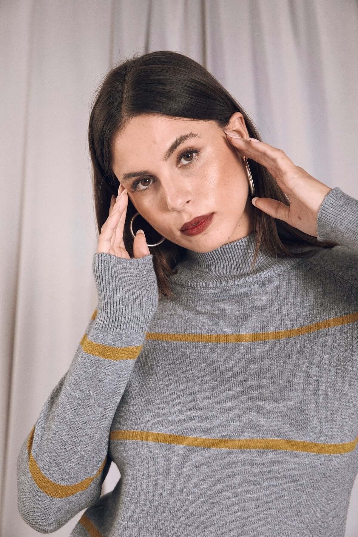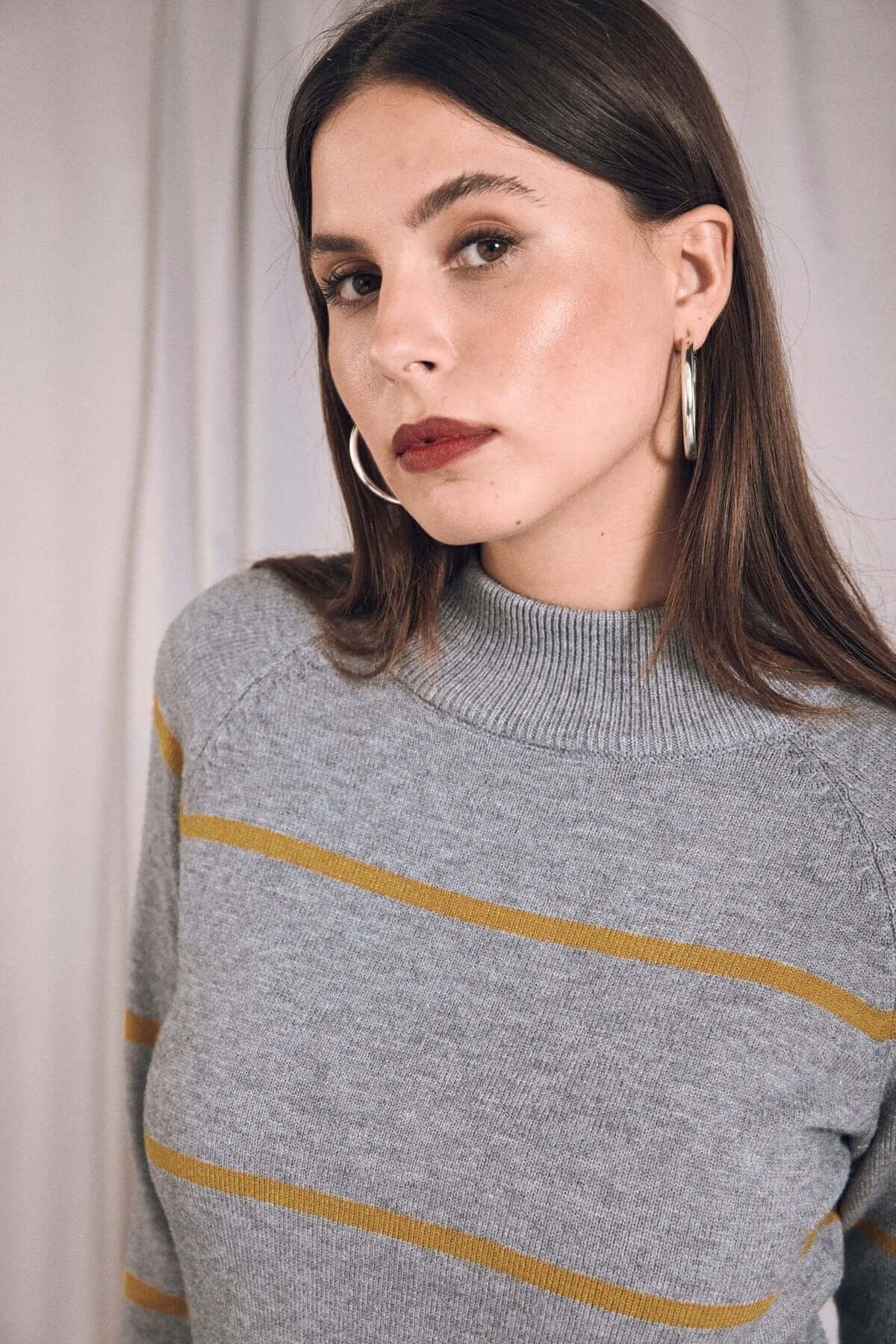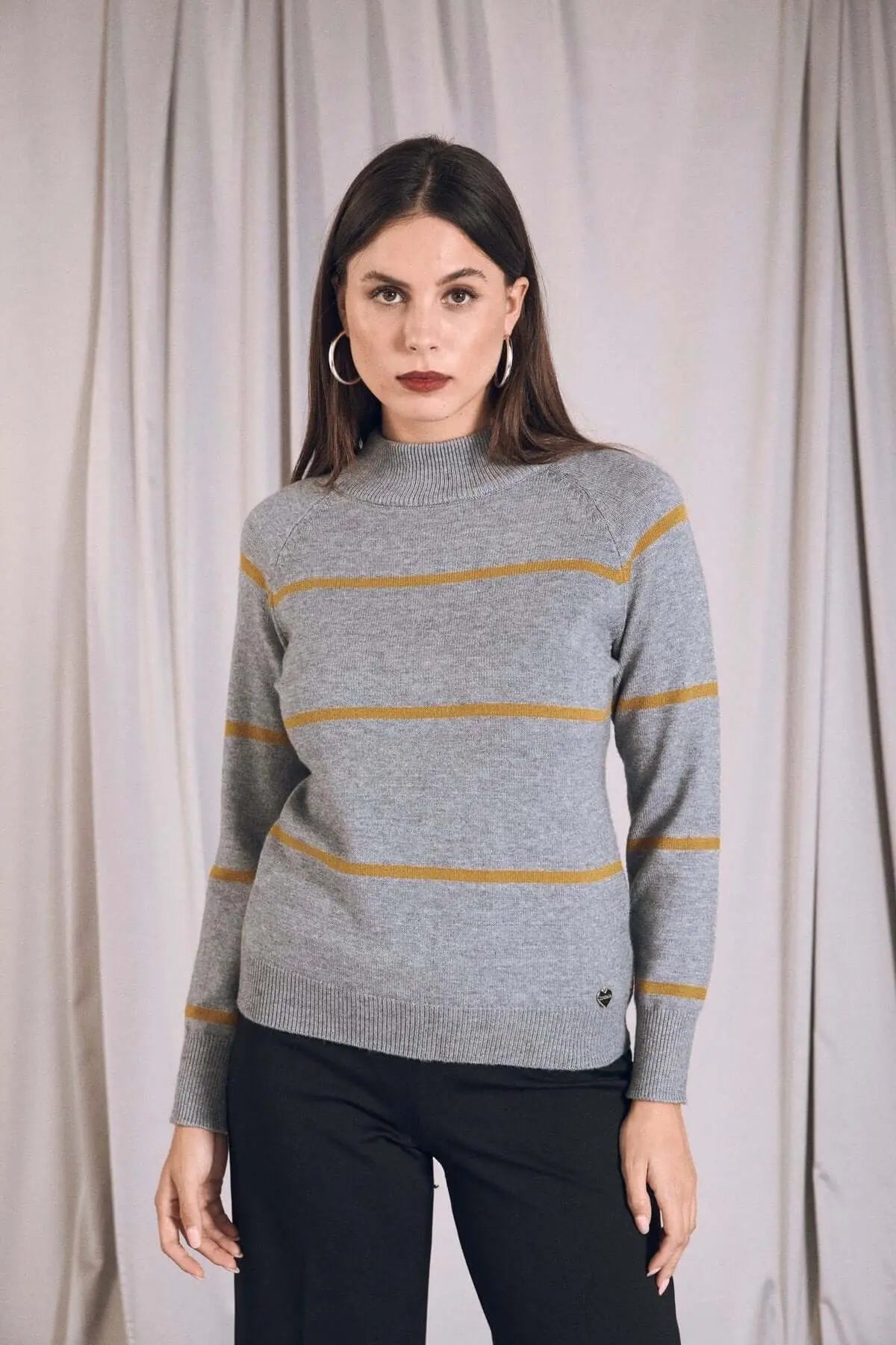 Suéter de rayas con medio cuello acanalado GRIS MEDIO