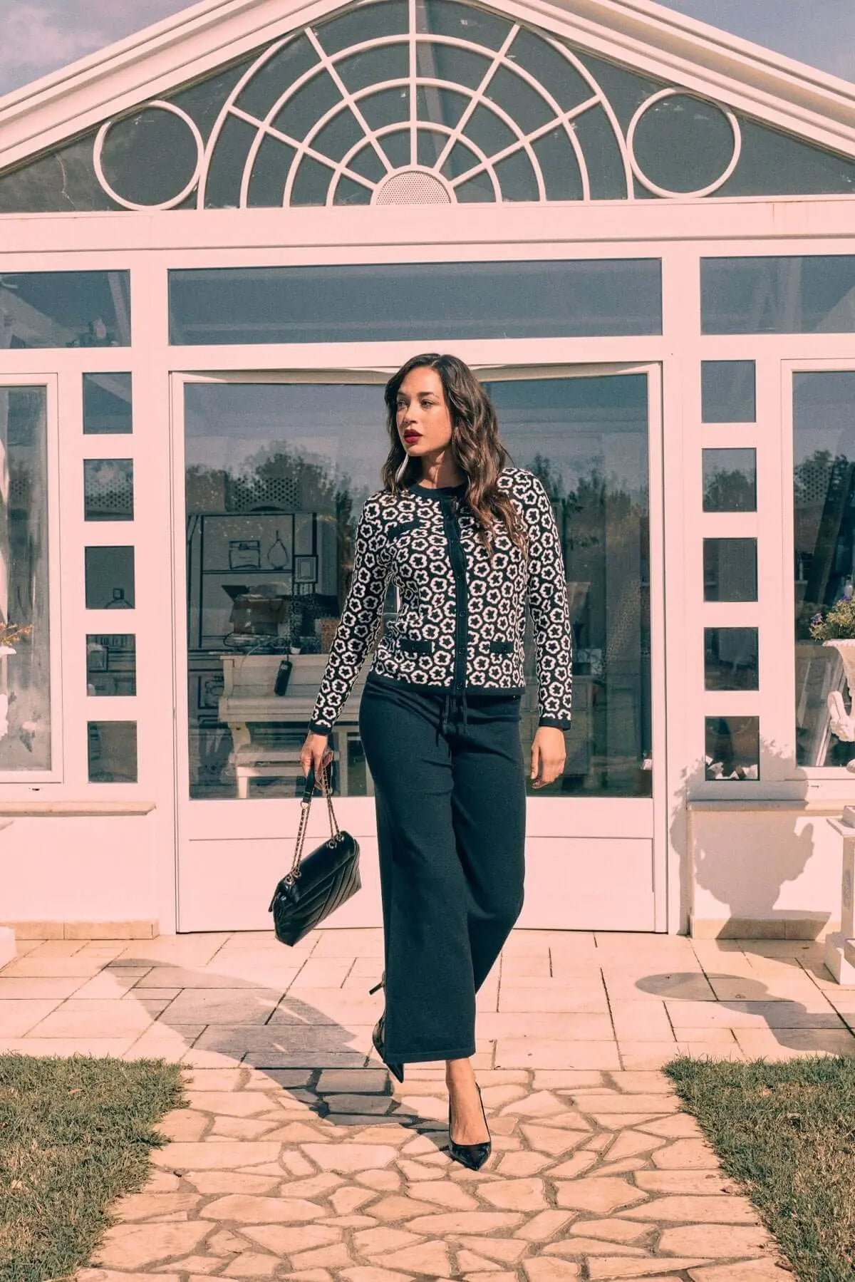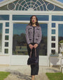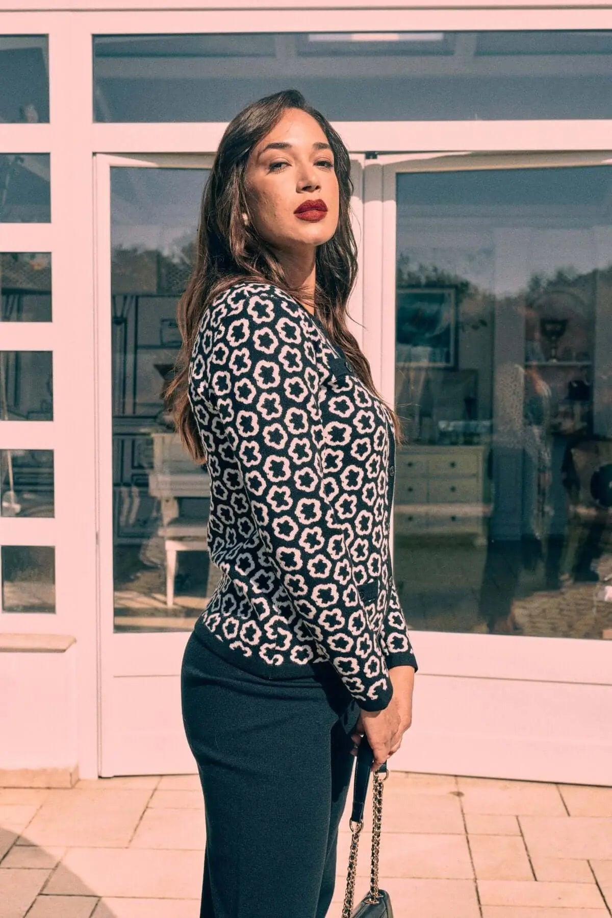 Cárdigan con motivo gráfico integral, botones e inserciones de color liso NEGRO