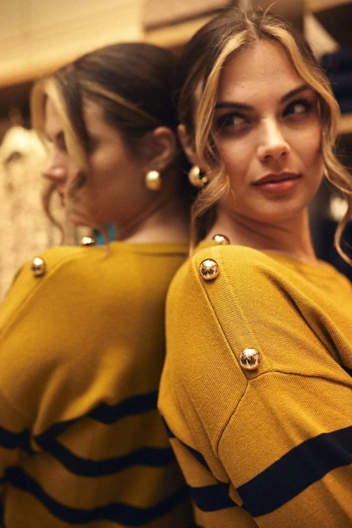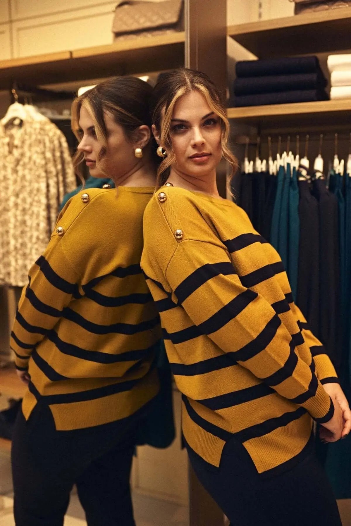 Suéter con estampado de rayas y detalles de botones en los hombros TAPENADE