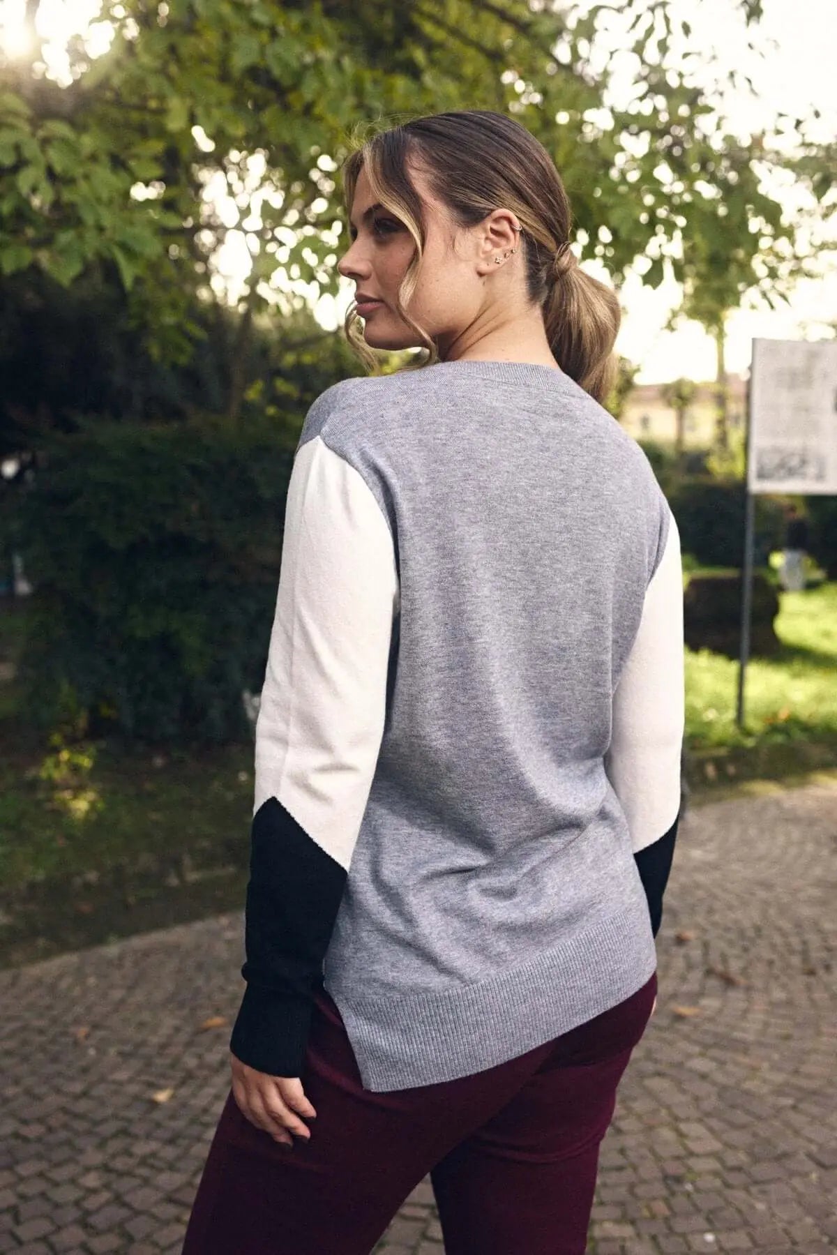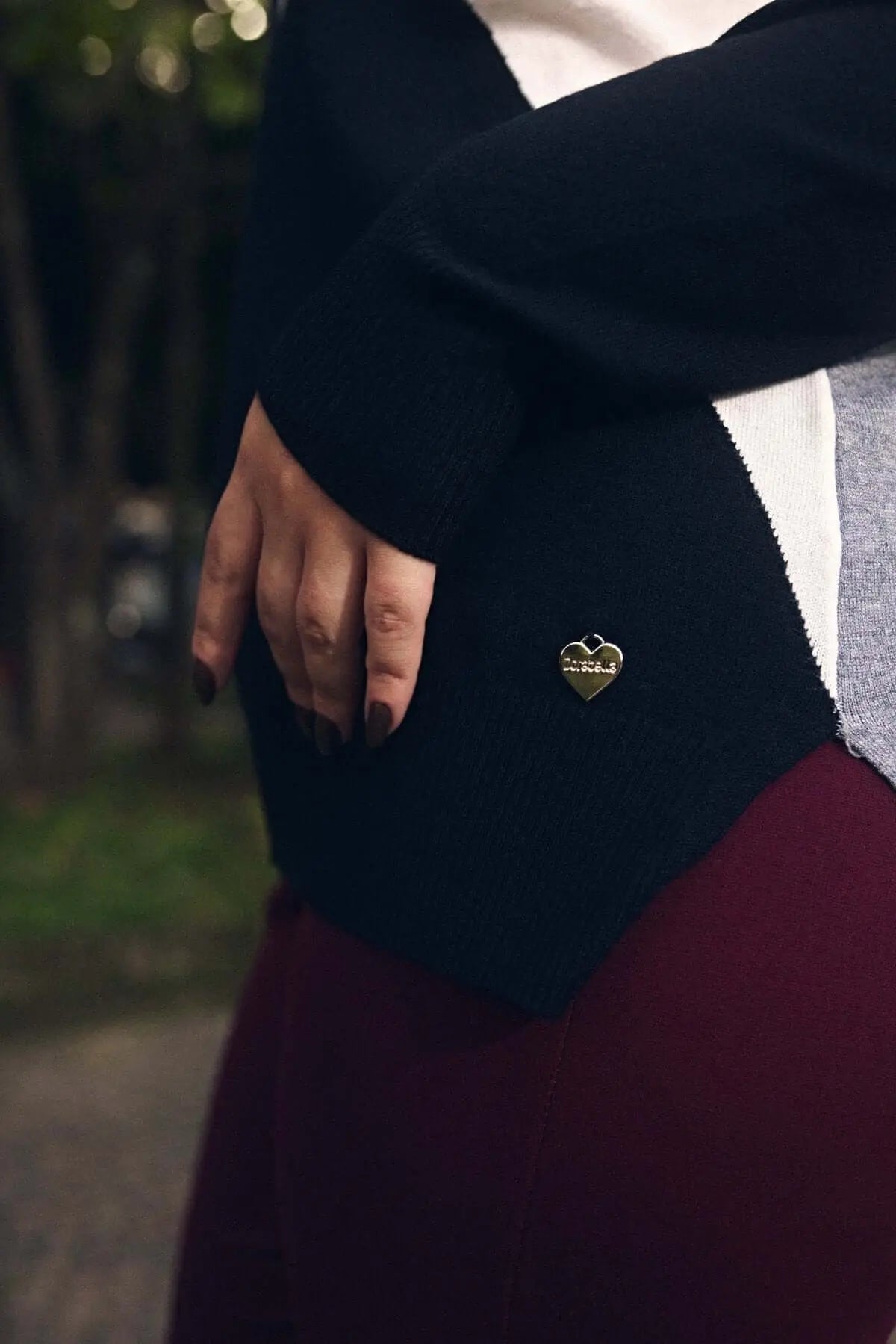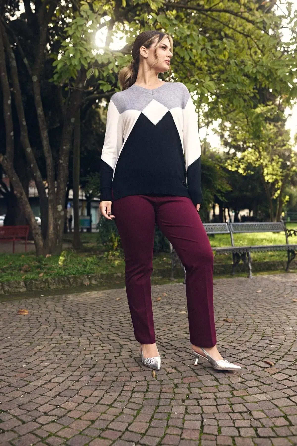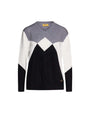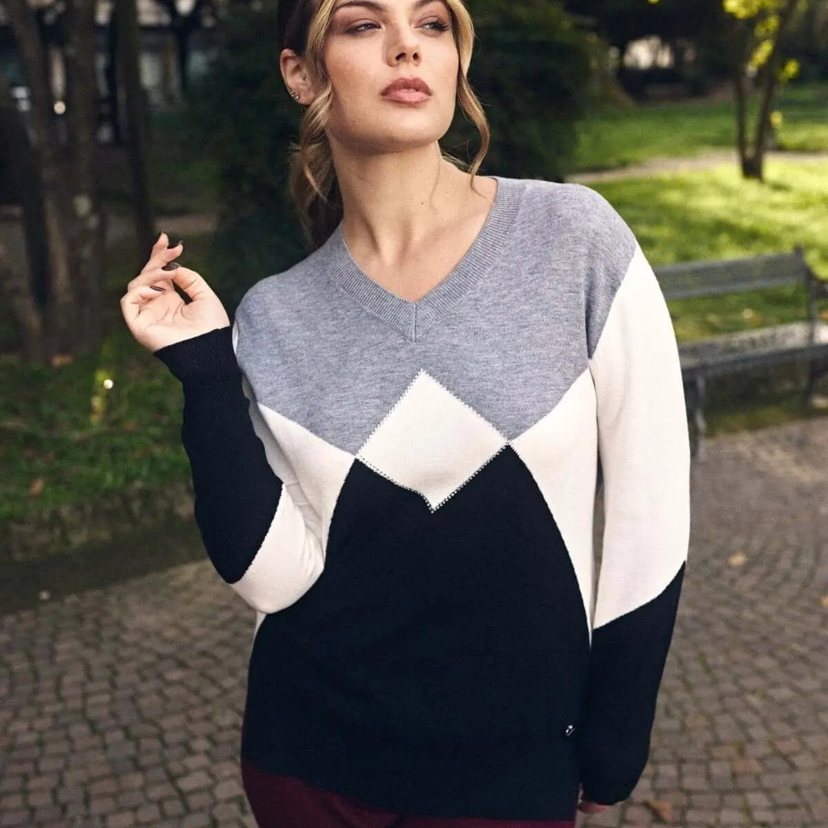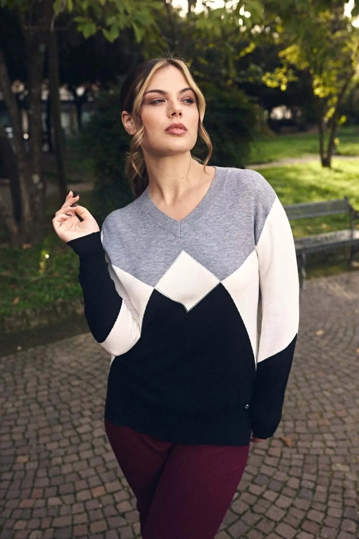 Suéter con estampado de rombos, cuello en V y pedrería NEGRO