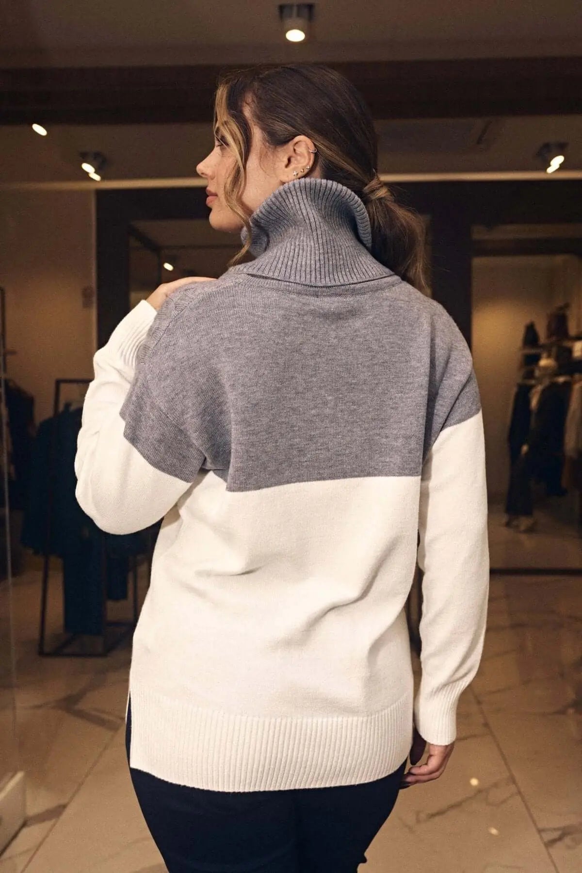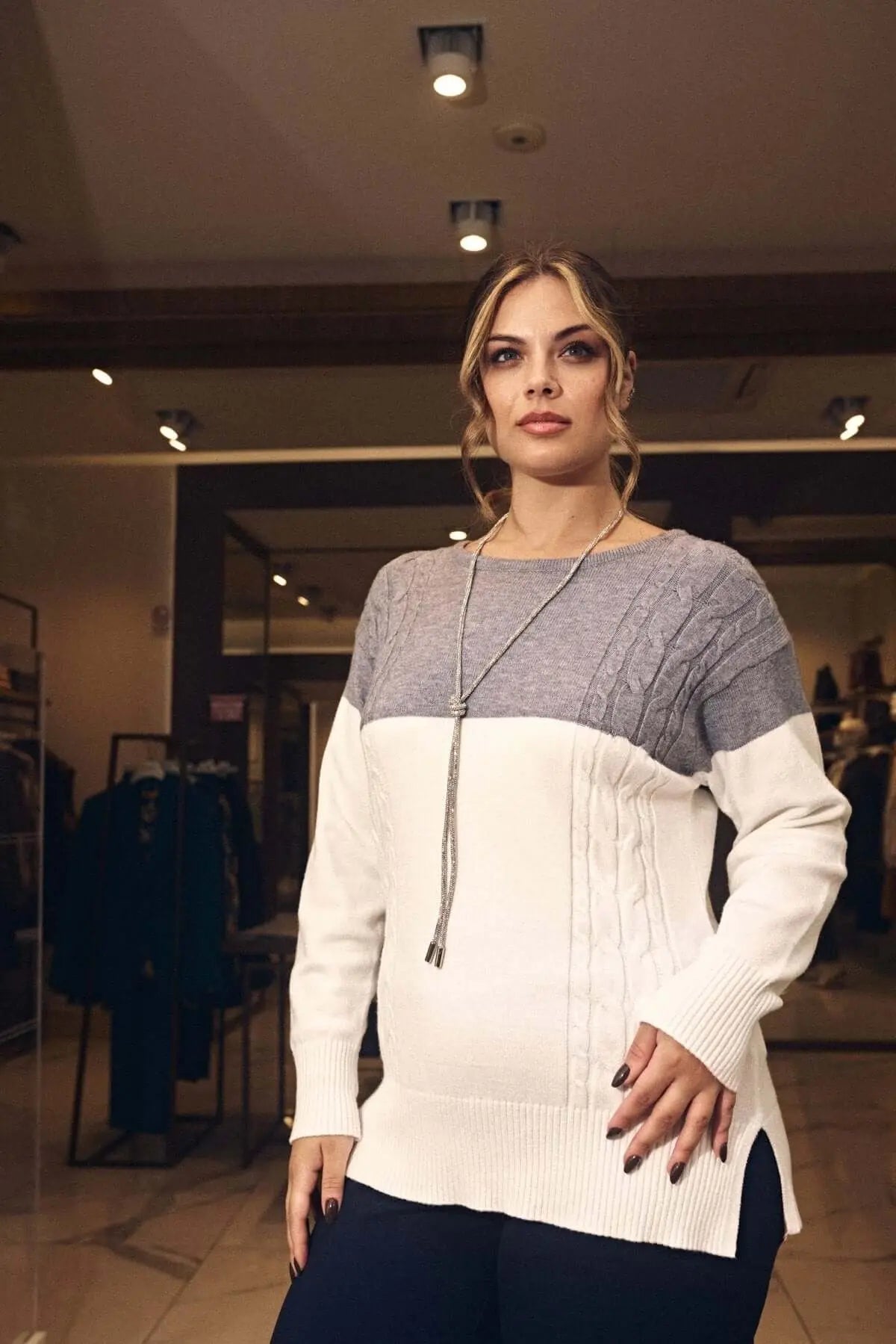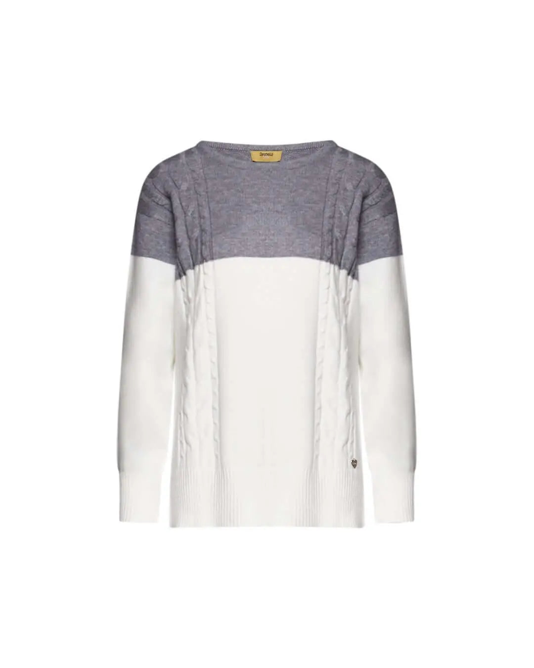Suéter bicolor con trenzas y cuello desmontable OFF WHITE