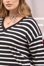 Suéter de rayas con cuello en V y ribete de encaje NEGRO
